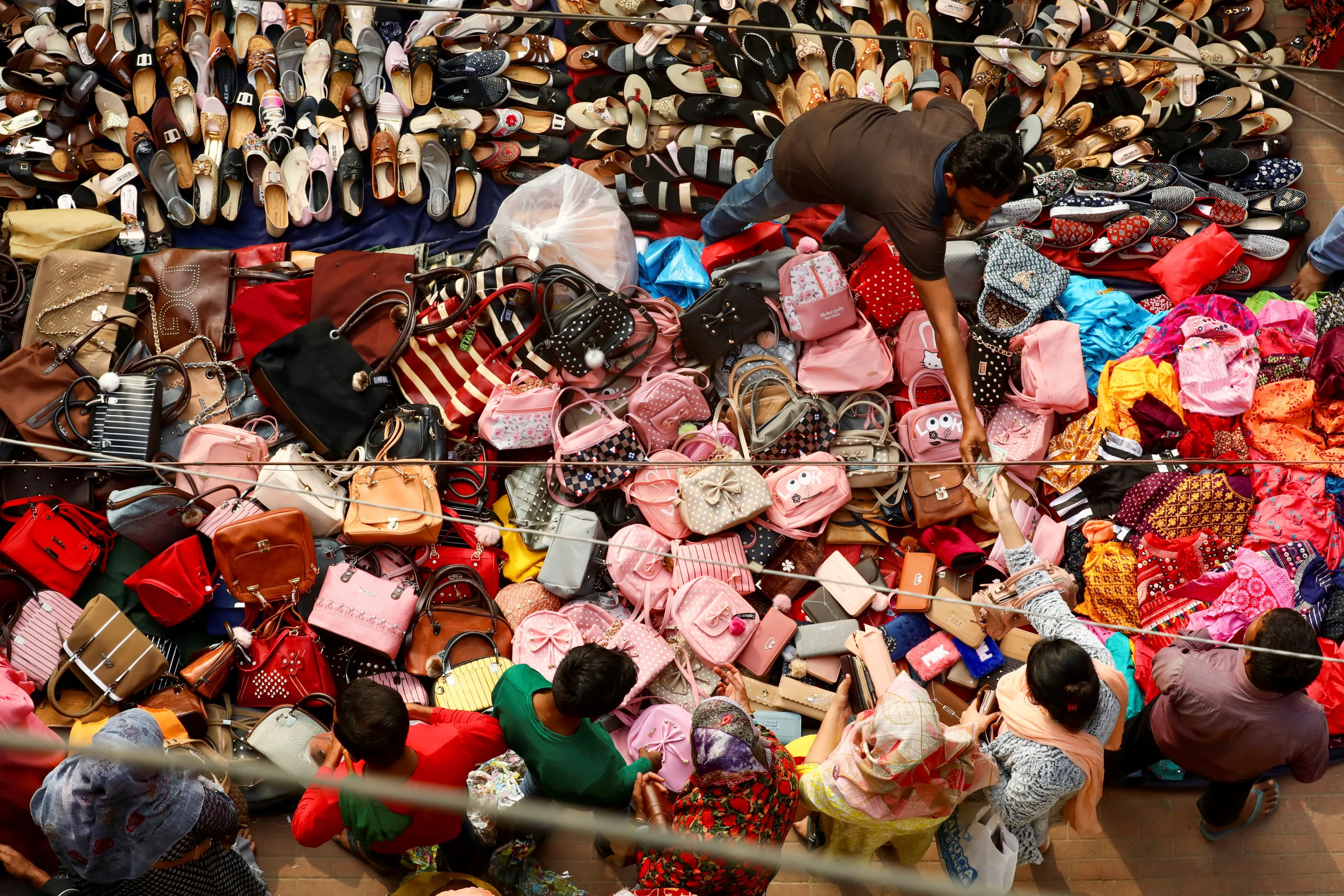 People buy handbags from a street vendor at the New Market area in Dhaka, Bangladesh on January 24, 2021. (Photo by Mohammad Ponir Hossain/Reuters)