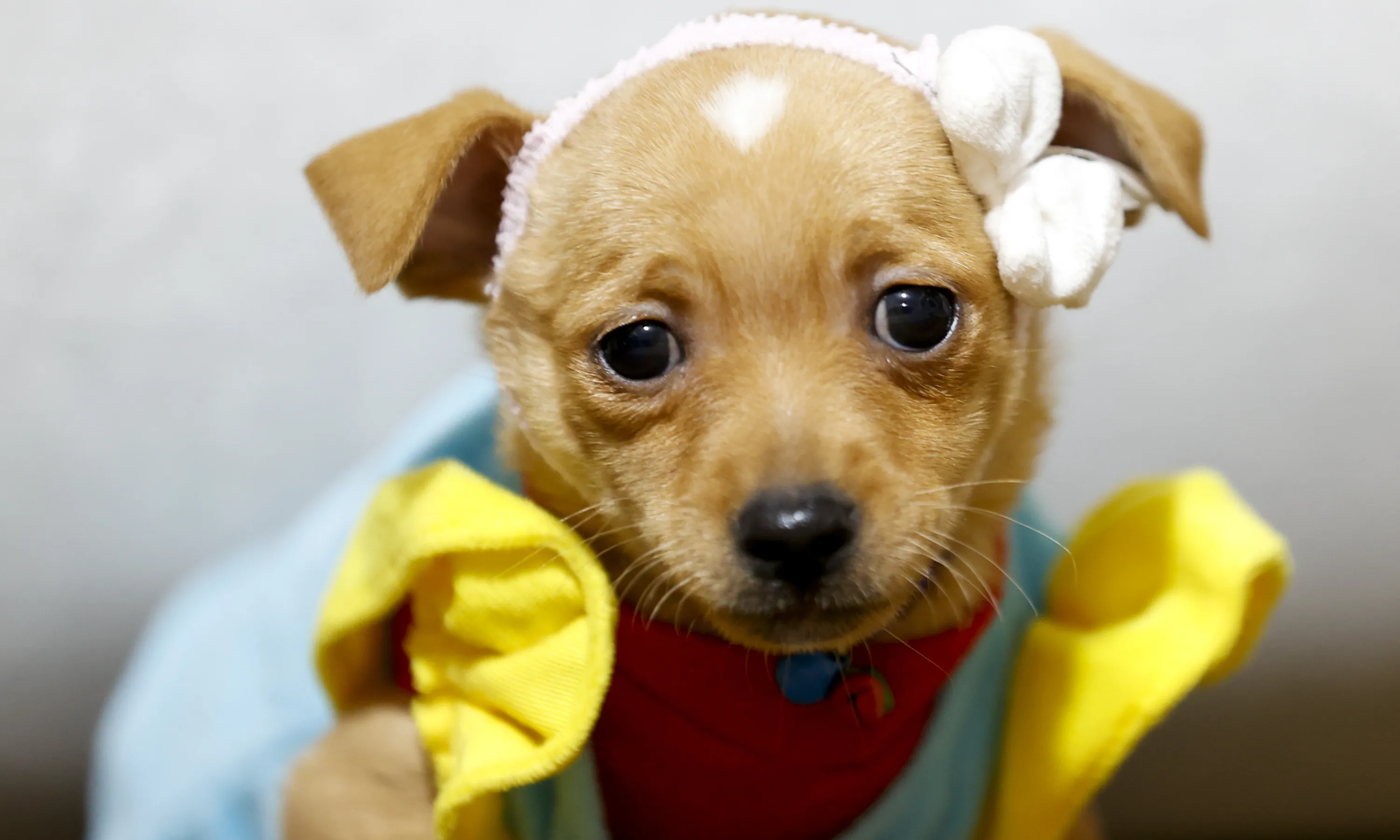 A dressed 2 month-old Pinscher “Sans” of Bahadir Avci is seen due to cold weather in Antalya, Turkey on January 13, 2021. (Photo by Mustafa Ciftci/Anadolu Agency via Getty Images)