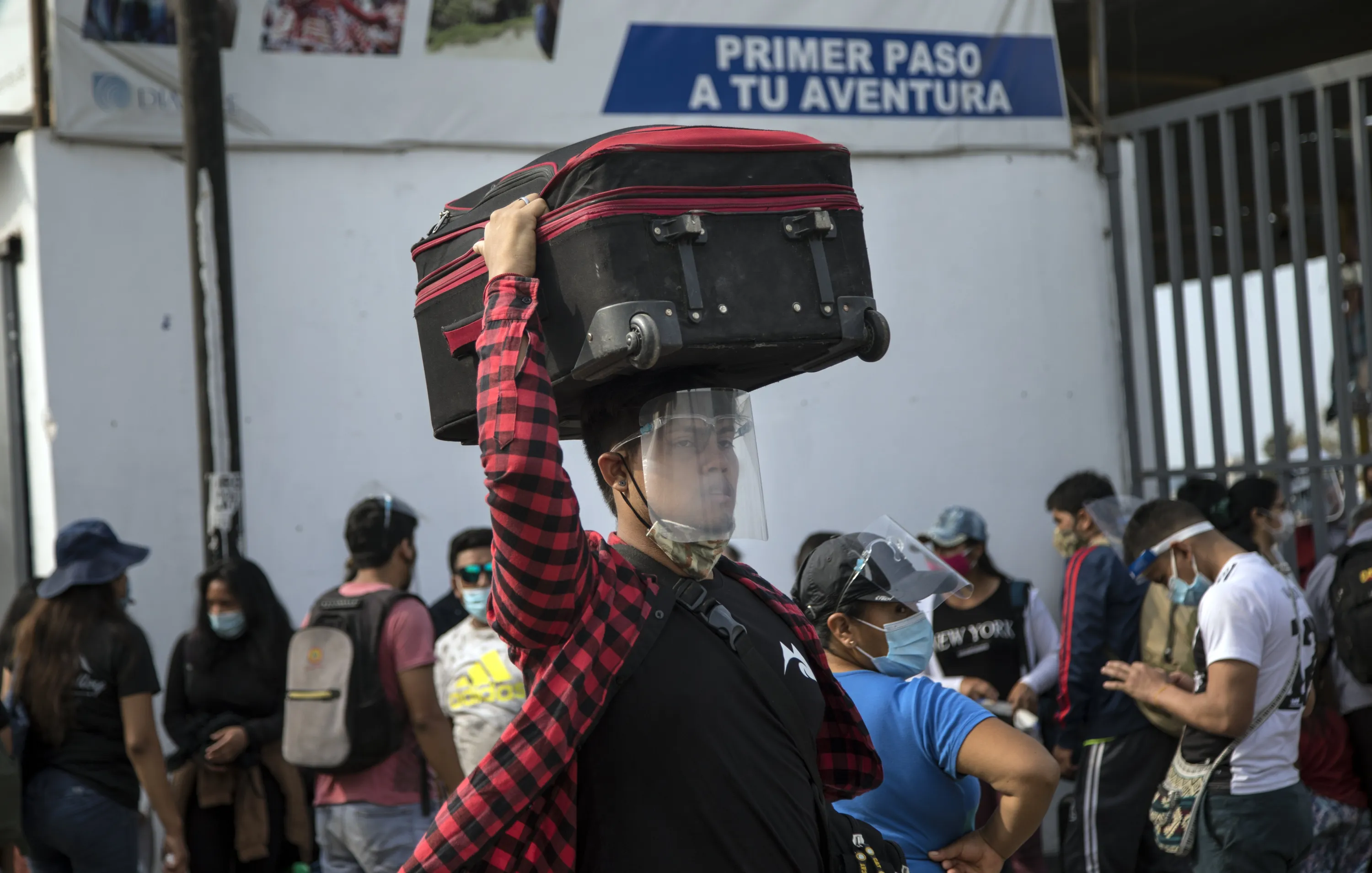 A passenger, wearing protective face gear amid the new coronavirus pandemic, arrives at a long-distance bus terminal, in Lima, Peru, Saturday, January 30, 2021. Hundreds of people are traveling to their provinces of origin before a strict two-week quarantine begins Sunday in various regions of the country as a measure to curve the spread of COVID-19. (Photo by Rodrigo Abd/AP Photo)