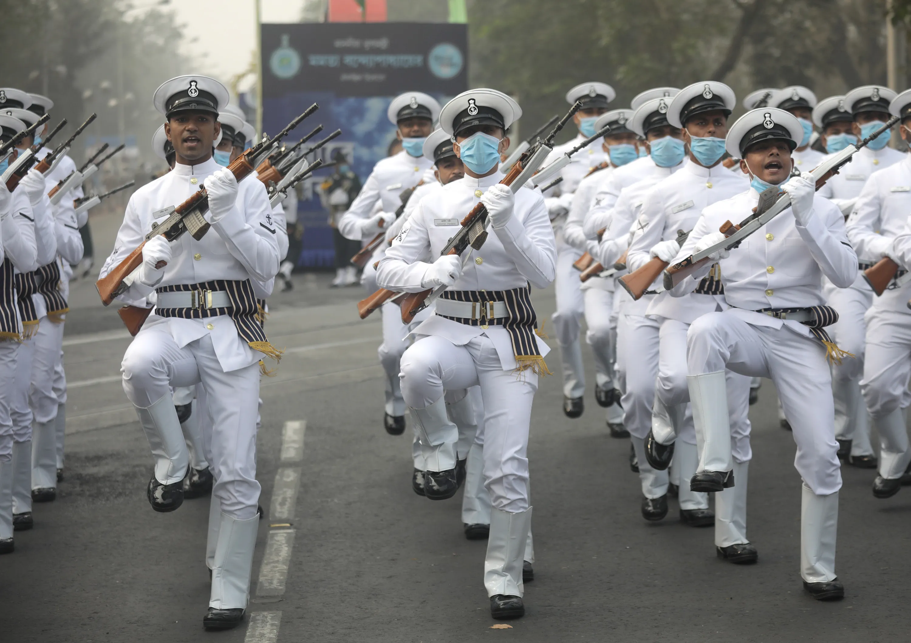Indian Navy personnel take part in the Republic Day celebration parade in Kolkata, India, 26 January 2021. (Photo by Piyal Adhikary/EPA/EFE)