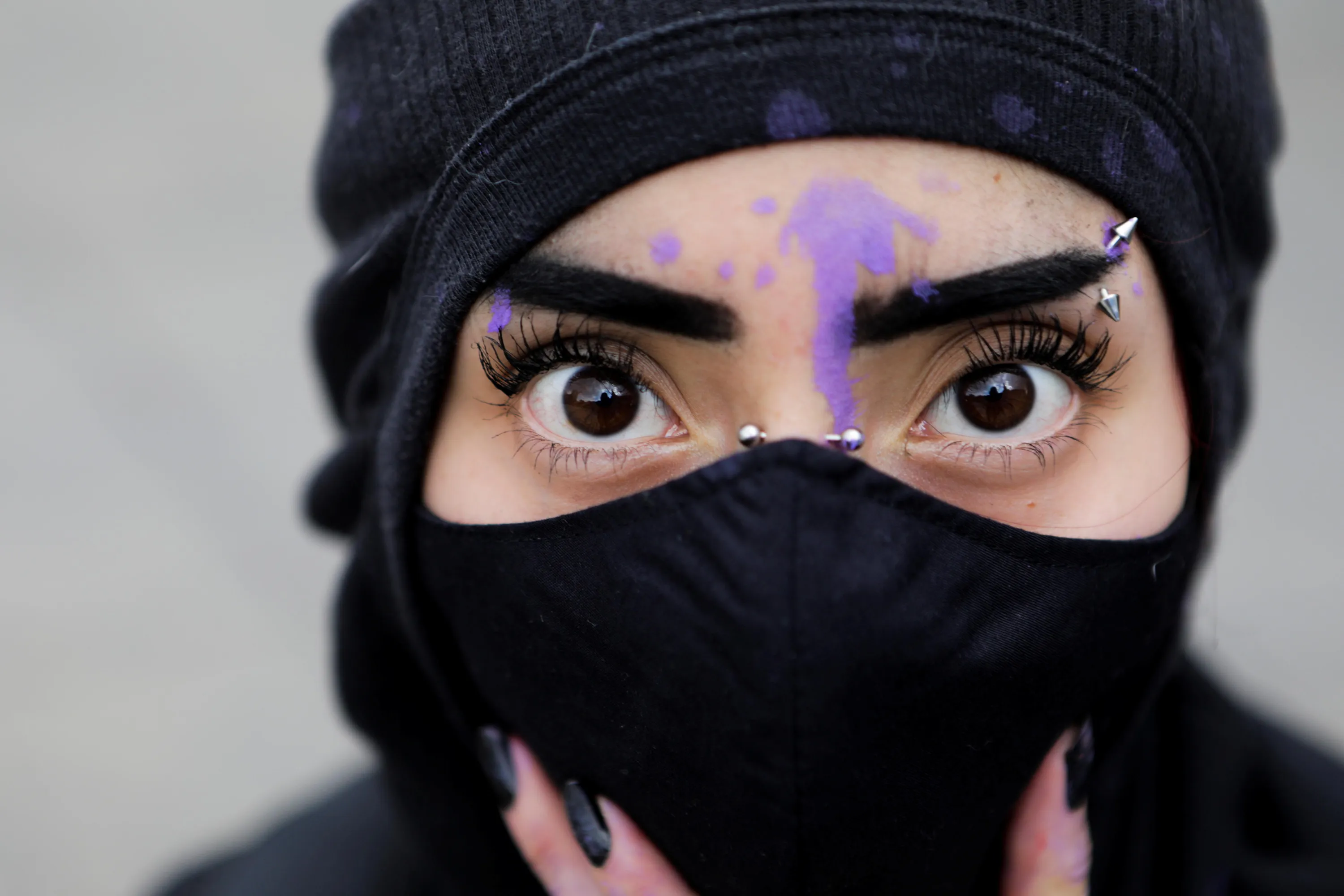 A masked woman poses for a picture during a march demanding justice for the victims of gender violence and femicides in Mexico City, Mexico on August 16, 2020. (Photo by Raquel Cunha/Reuters)