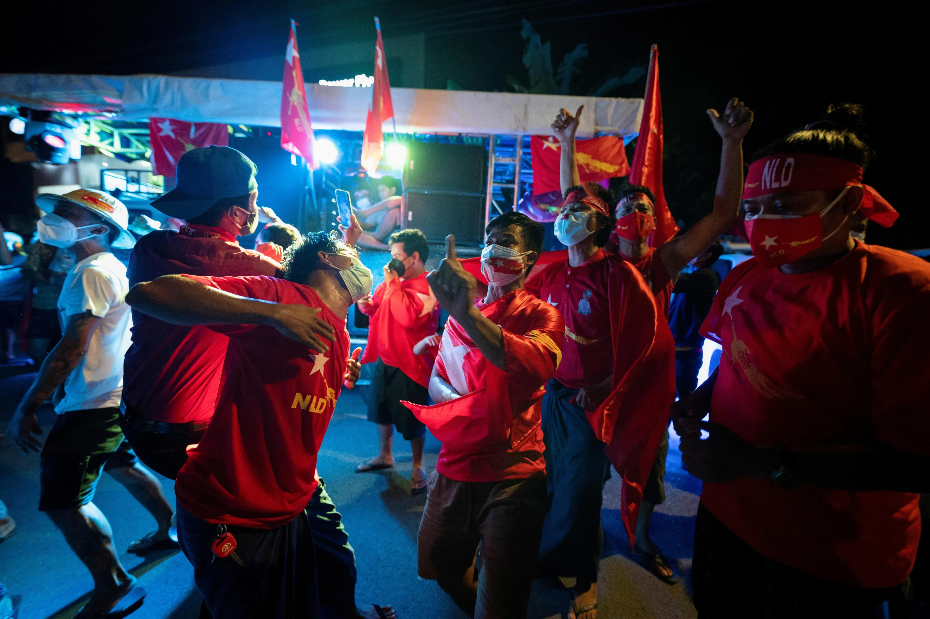 Supporters of National League for Democracy gather to celebrate at party headquarters after the general election in Yangon, Myanmar, November 9, 2020. (Photo by Shwe Paw Mya Tin/Reuters)