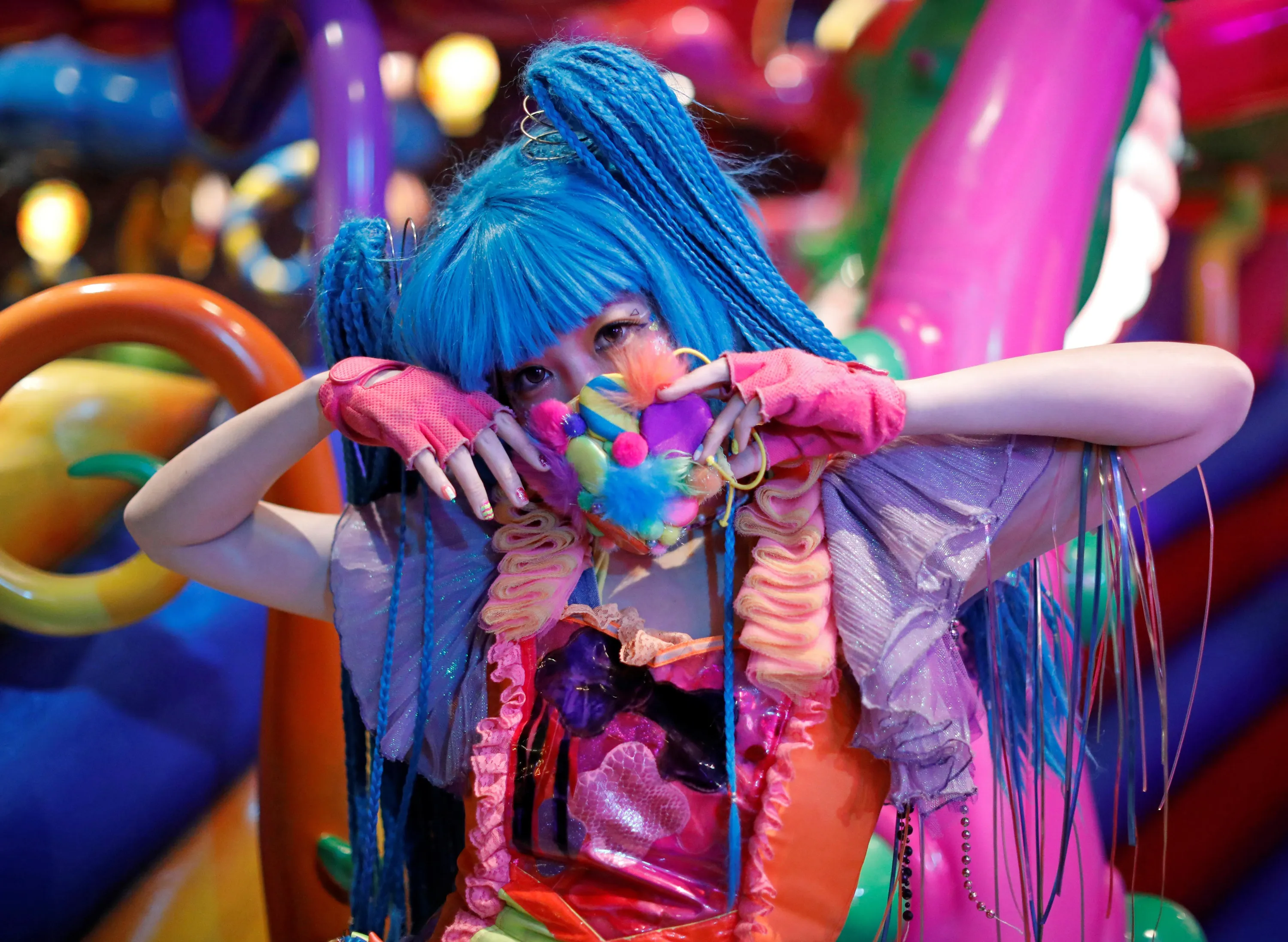 Monster Girl Candy Asachill, an iconic Harajuku girl and a staff member of the cafe, wearing a face mask poses for a photograph at Kawaii Monster Cafe, amid the coronavirus disease (COVID-19) outbreak, in Tokyo, Japan on January 31, 2021. (Photo by Issei Kato/Reuters)