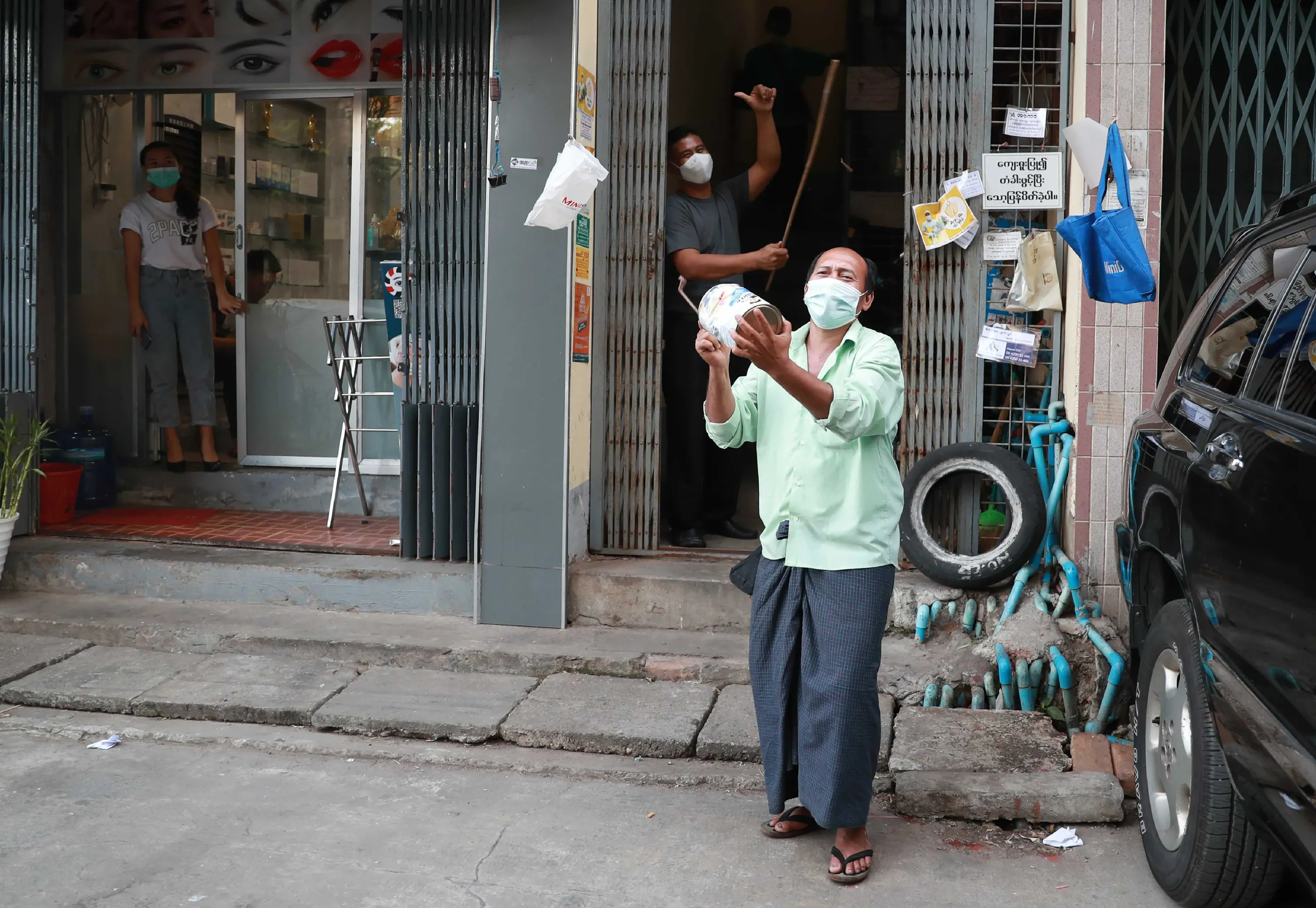 People beat pots and pans to make noise as they participate in a symbolic act of civil disobedience to protest against the military coup in Yangon, Myanmar, Tuesday, February 4, 2021. About 70 recently elected lawmakers defied the new military government on Thursday by convening a symbolic meeting of the Parliament that was prevented from opening. They signed their oaths of office at a government guesthouse in the capital, Naypyitaw, where about 400 of them were detained in the aftermath of the takeover. (Photo by AP Photo/Stringer)