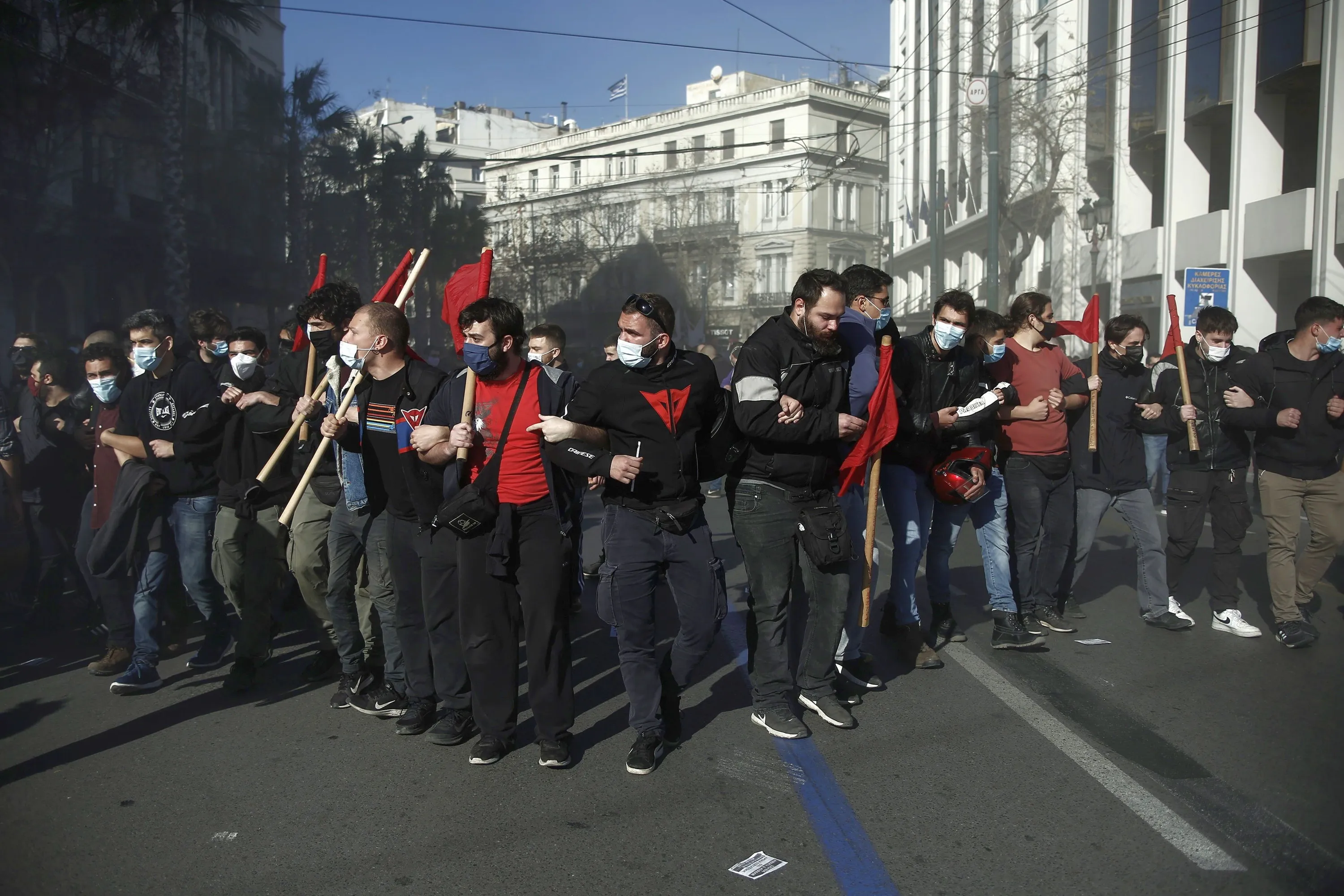 University students protest against the new bill on higher education in front of the Greek Parliament in Athens, Greece, 04 February 2021. Students and professors protested against proposals for a university police force, changes in the system for admission to higher education and a number of other issues. (Photo by Yannis Kolesidis/EPA/EFE)