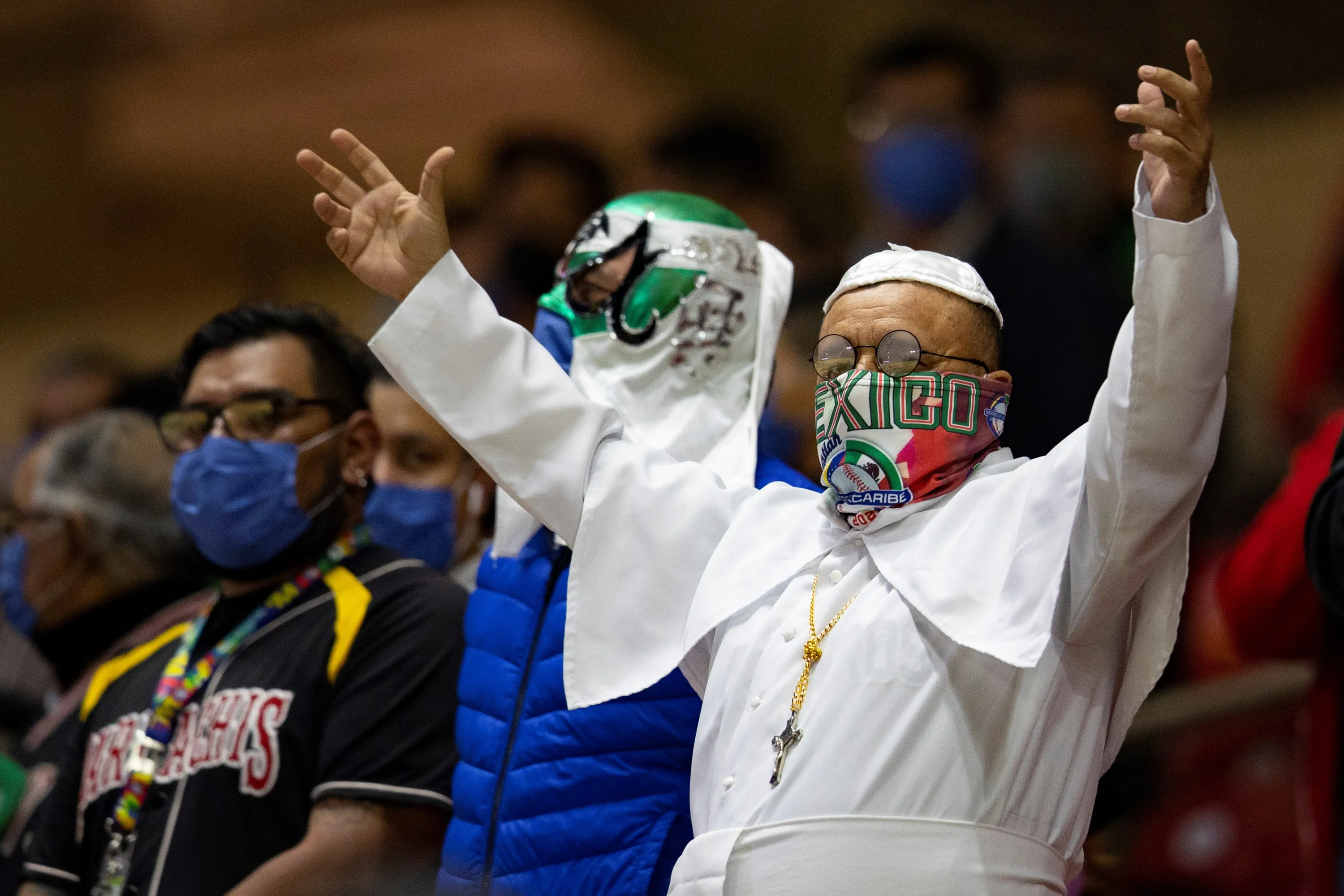Fans cheer during a baseball game of the 2021 Caribbean Series between Mexico and Panama in Mazatlan, Mexico, 03 February 2021. (Photo by Carlos Ramirez/EPA/EFE)