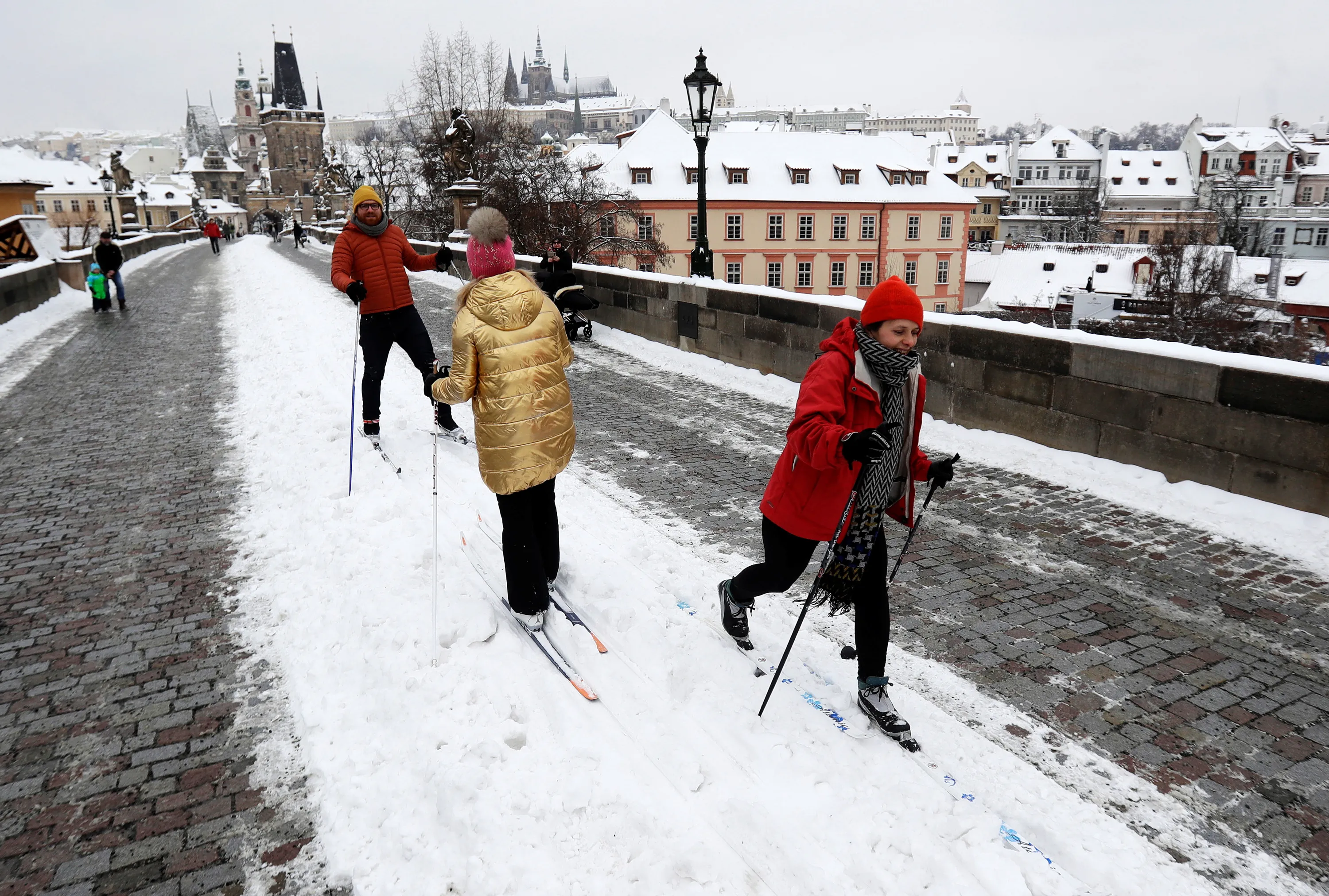 People cross-country ski across the medieval Charles Bridge in Prague, Czech Republic, February 9, 2021. (Photo by David W. Cerny/Reuters)