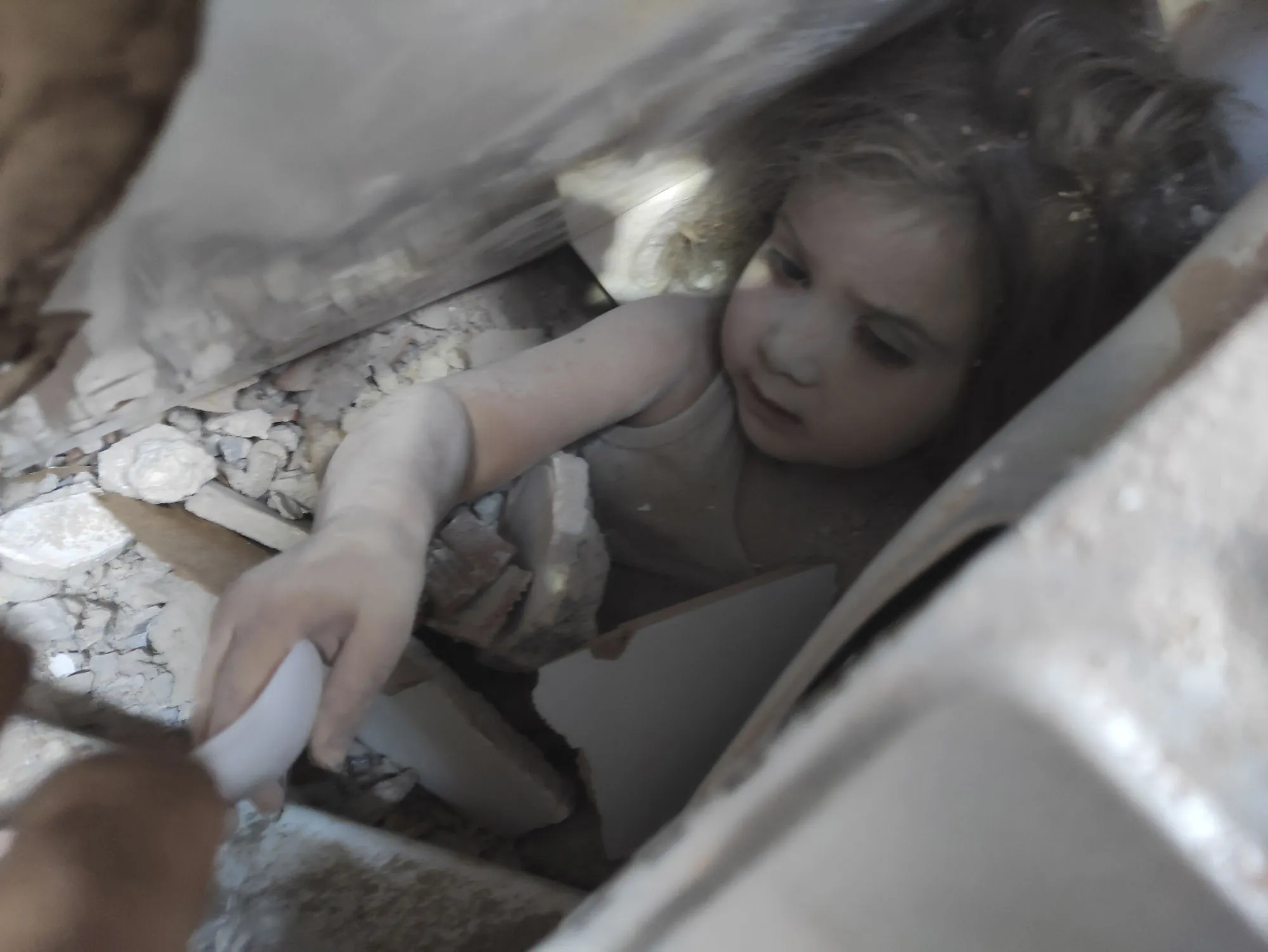 In this photo provided by the Turkish Gendarmerie, Ayda Gezgin is tended to by a member of rescue services in the rubble of her collapsed building, in Izmir, Turkey, Tuesday, November 3, 2020. Rescuers in the Turkish coastal city pulled Gezgin out alive from the rubble, some four days (91 hours) after a strong earthquake hit Turkey and Greece. The girl was taken into an ambulance, wrapped in a thermal blanket, amid the sounds of cheers and applause from rescue workers. (Photo by Turkish Gendarmerie via AP Photo)