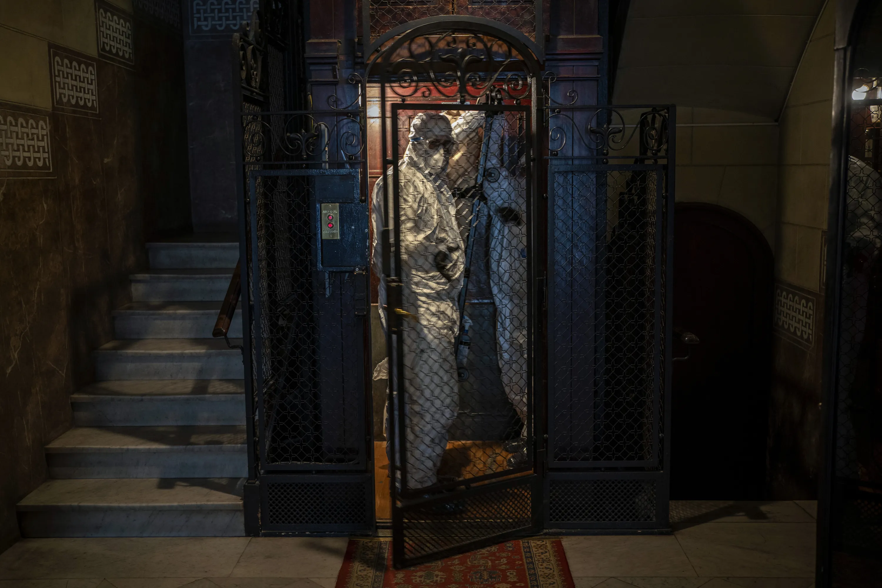 Wearing protective suits to prevent infection, mortuary workers move the body of an elderly person who died of COVID-19 from an elevator after removing it from a nursing home in Barcelona, Spain, Friday, November 13, 2020. (Photo by Emilio Morenatti/AP Photo)