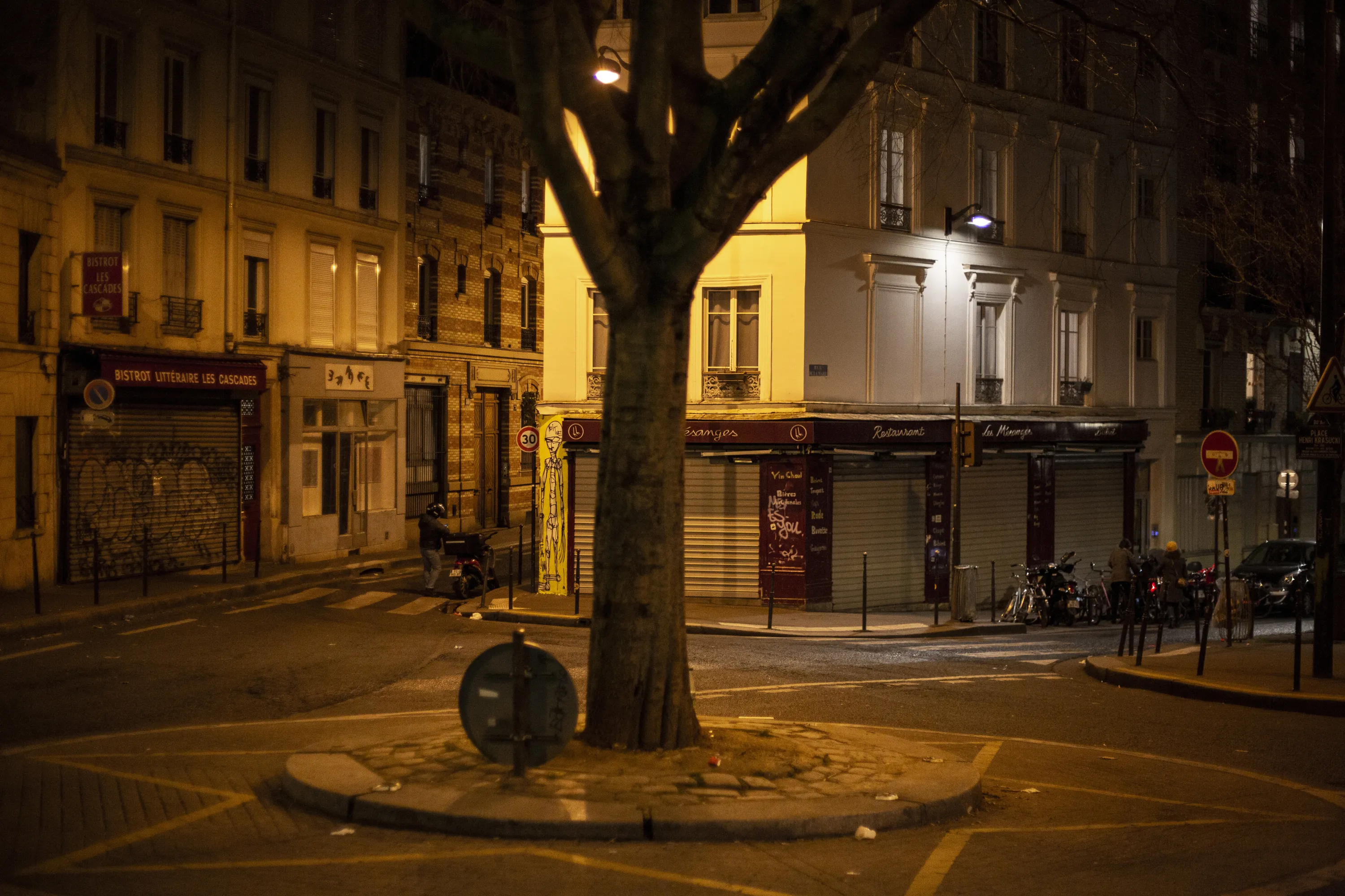 View of an empty street as the 6 p.m curfew starts in Paris, France, Friday, February 26, 2021. The curfew is to cover the whole country, including zones like Paris, where it previously hadn't started until 8 p.m. (Photo by Rafael Yaghobzadeh/AP Photo)