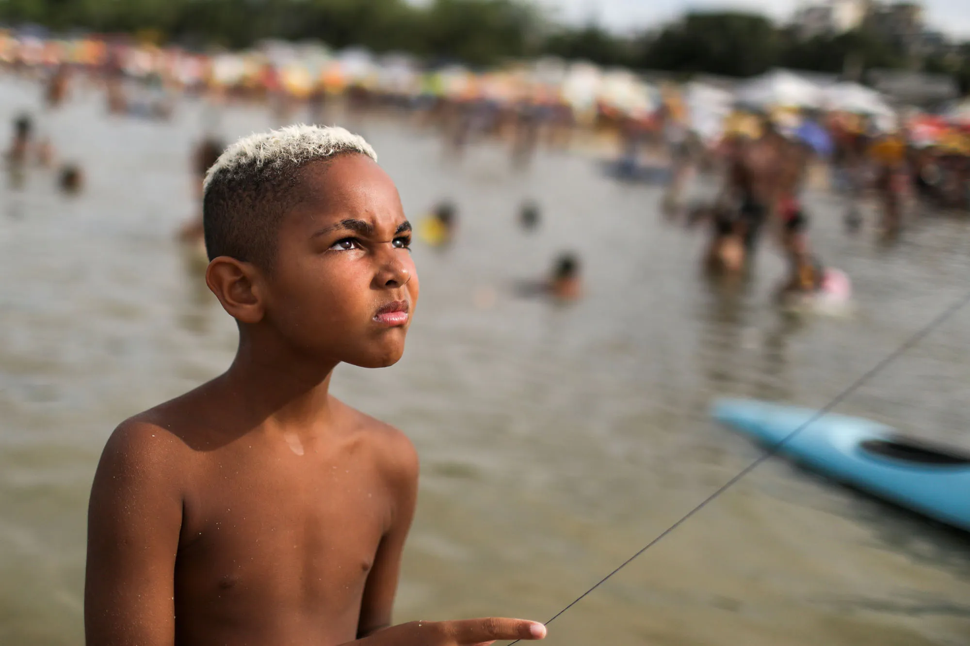 A boy flies a kite at an artificial pond known as Piscinao de Ramos, or big pool, amid the coronavirus disease (COVID-19) outbreak, in the northern suburbs of Rio de Janeiro, Brazil on January 31, 2021. (Photo by Pilar Olivares/Reuters)