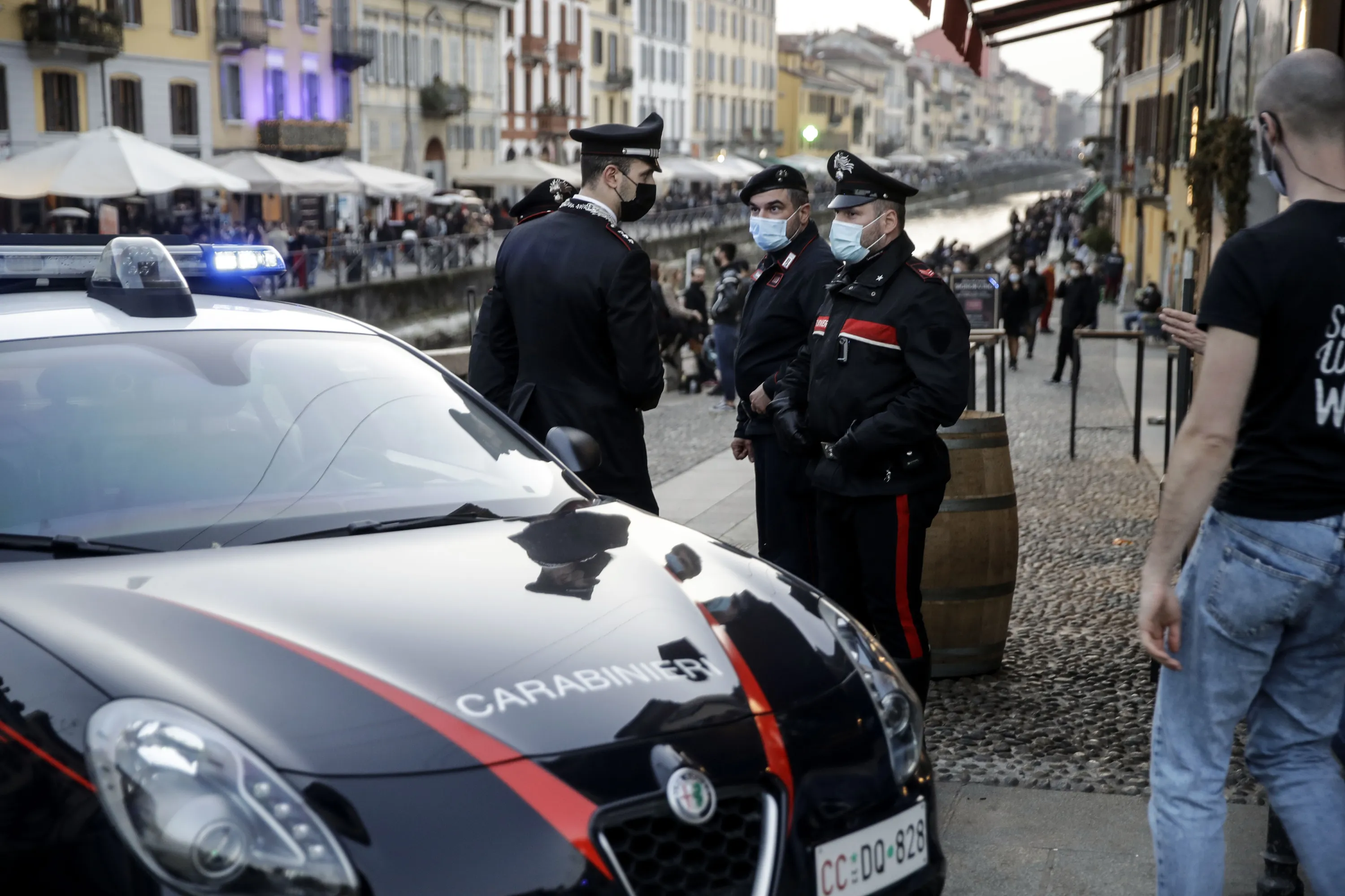 Carabinieri, Italian police officers, patrol the Naviglio Grande canal, in Milan, Italy, Saturday, February 27, 2021. Police vans blocked entrance to Milan's trendy Navigli neighborhood Saturday evening after the mayor announced increased patrols to prevent gatherings during a spring-like weekend. The Lombardy region where Milan is located is heading toward a partial lockdown on Monday, and Mayor Giuseppe Sala said in a video message that he was disturbed by scenes of people gathering in public places, often with their masks down. (Photo by Luca Bruno/AP Photo)