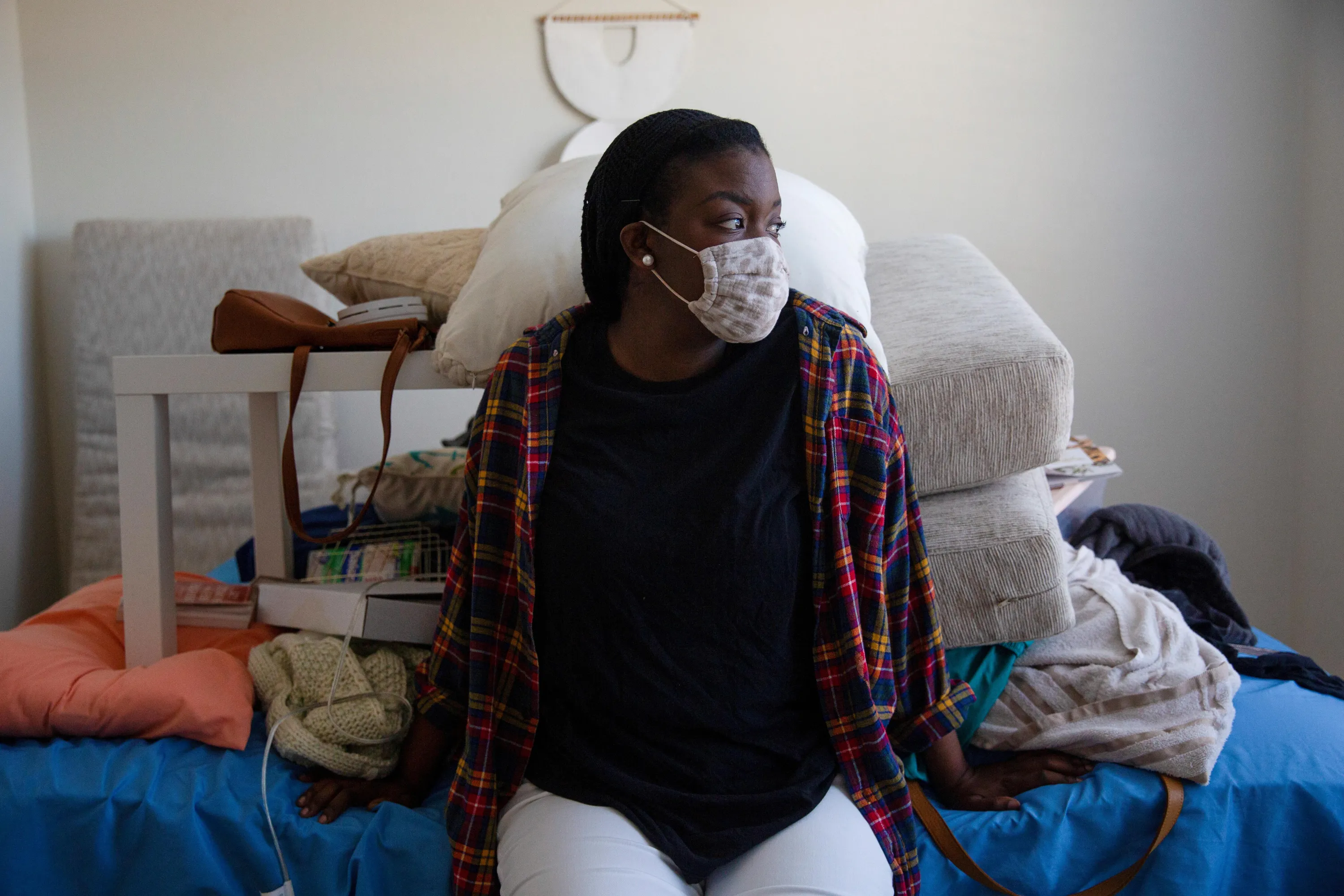 Melissa Wilson sits inside her apartment, which is in repair after a flooding occurred due to a burst pipe caused by winter weather in the unit above hers, in Fort Worth, Texas, February 24, 2021. (Photo by Shelby Tauber/Reuters)
