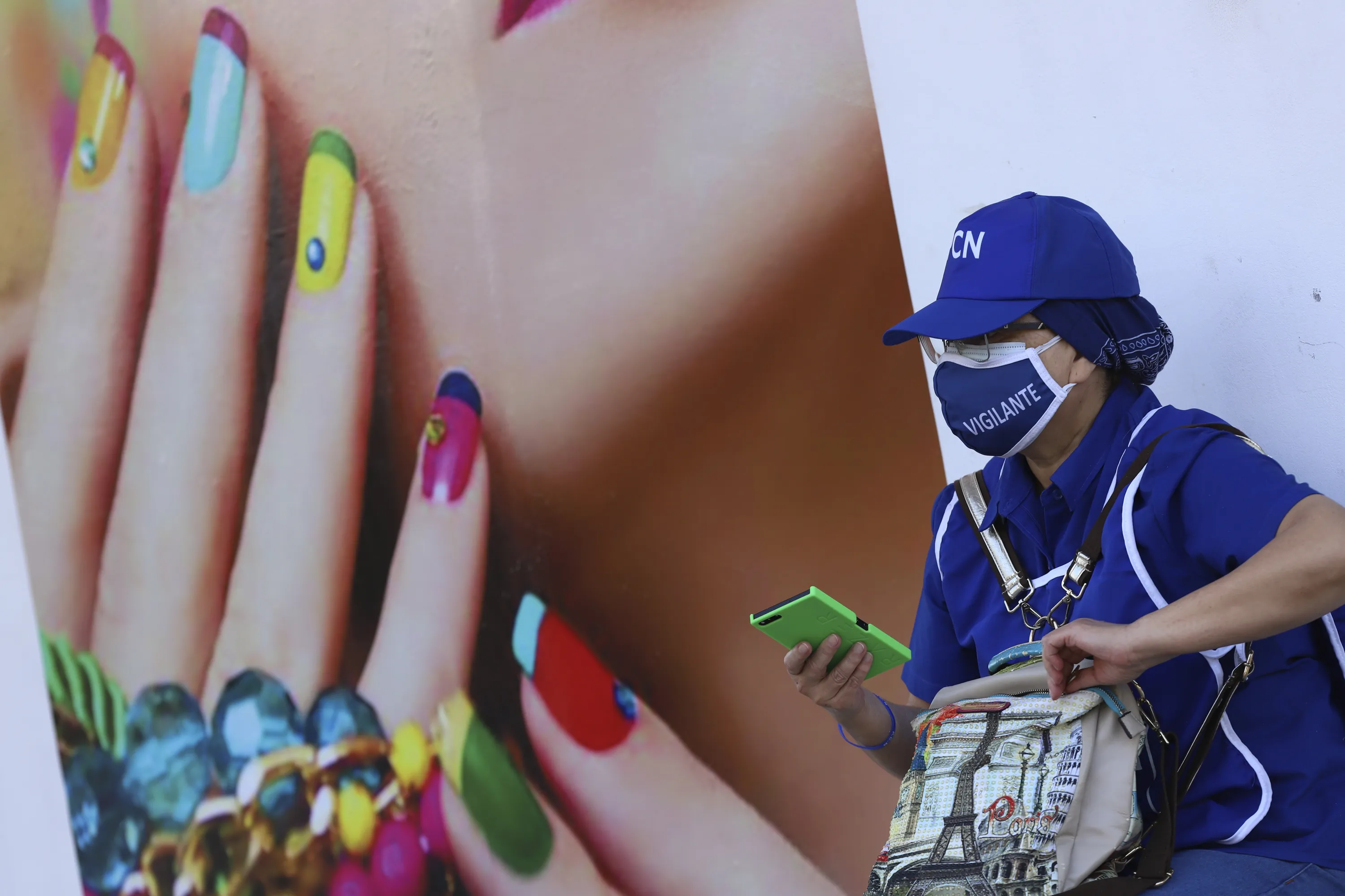 A poll worker takes a break while working during legislative and local elections at a polling place in San Salvador, El Salvador, Sunday, February 28, 2021. Sunday's elections in El Salvador are seen as a referendum on whether to break the congressional deadlock that has tied the hands of upstart populist President Nayib Bukele. (Photo by Salvador Melendez/AP Photo)