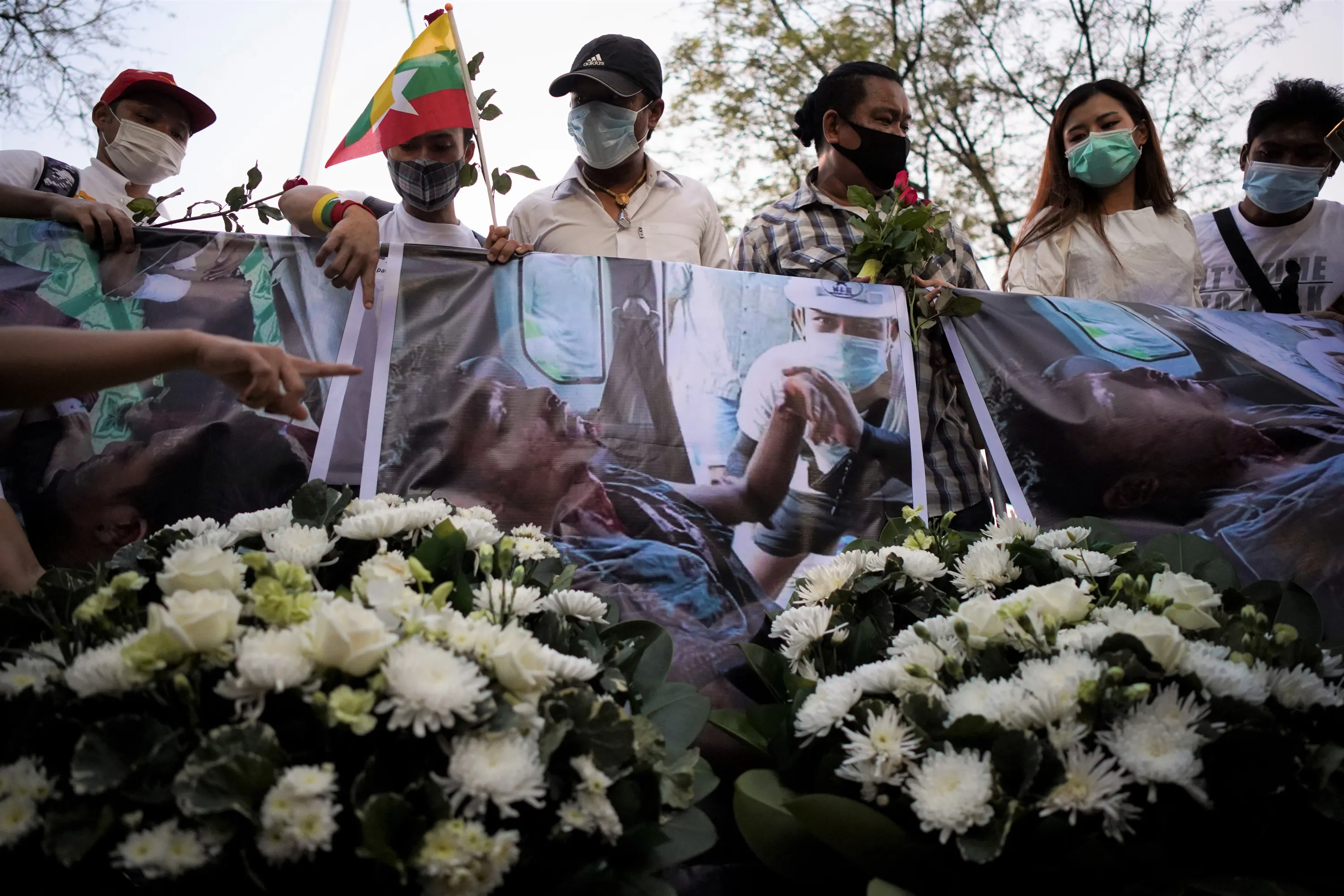 People gather to mourn those who died in Myanmar during anti-coup protests, in front of the U.N. building in Bangkok, Thailand on March 4, 2021. (Photo by Athit Perawongmetha/Reuters)