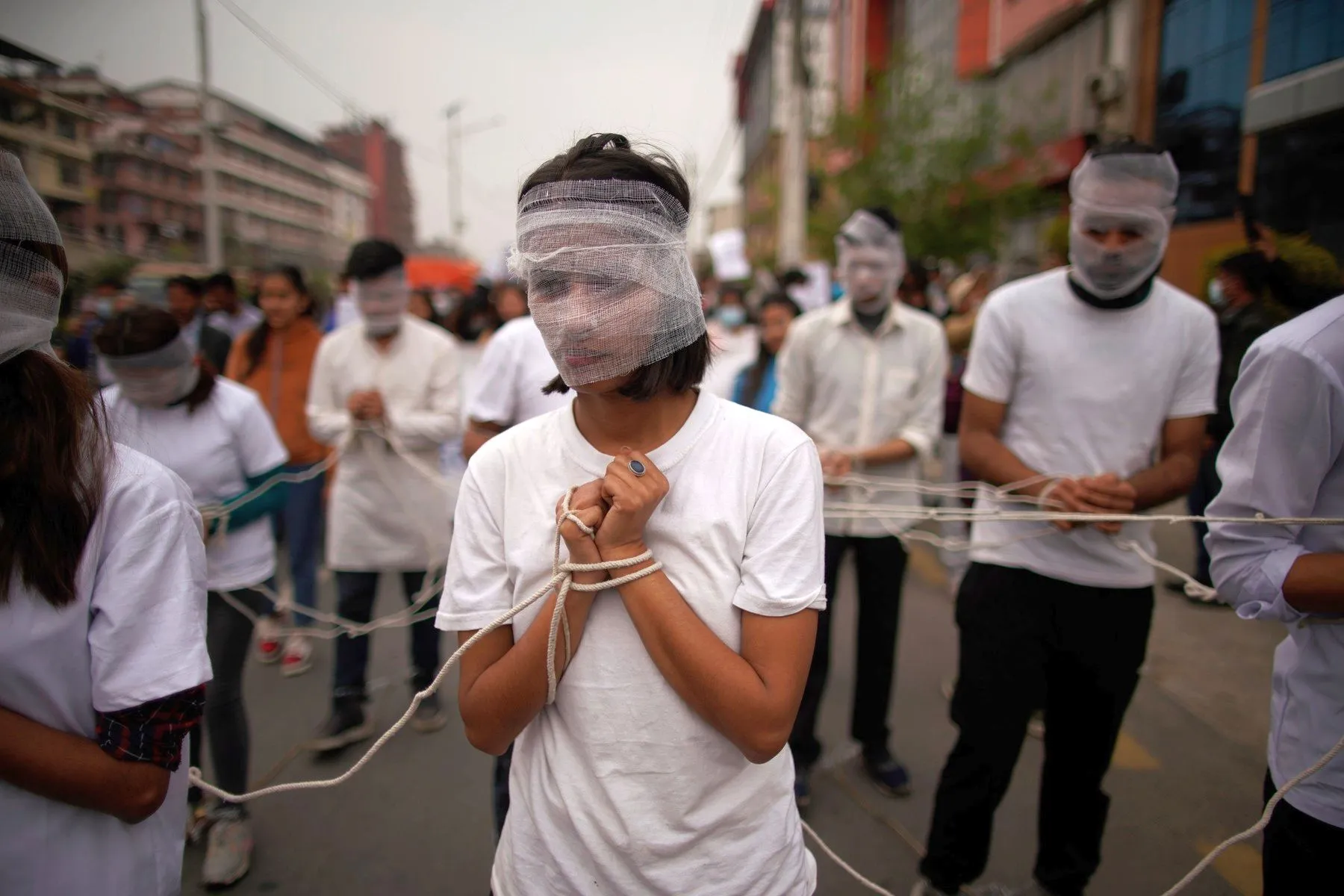 Civil Society members stage a symbolic demonstration in favor of democracy on the first day of the parliament session following the reinstatement of Federal Parliament in Kathmandu, Nepal on Sunday, 7 March 2021. (Photo by Skanda Gautam/Zuma Press/Profimedia)