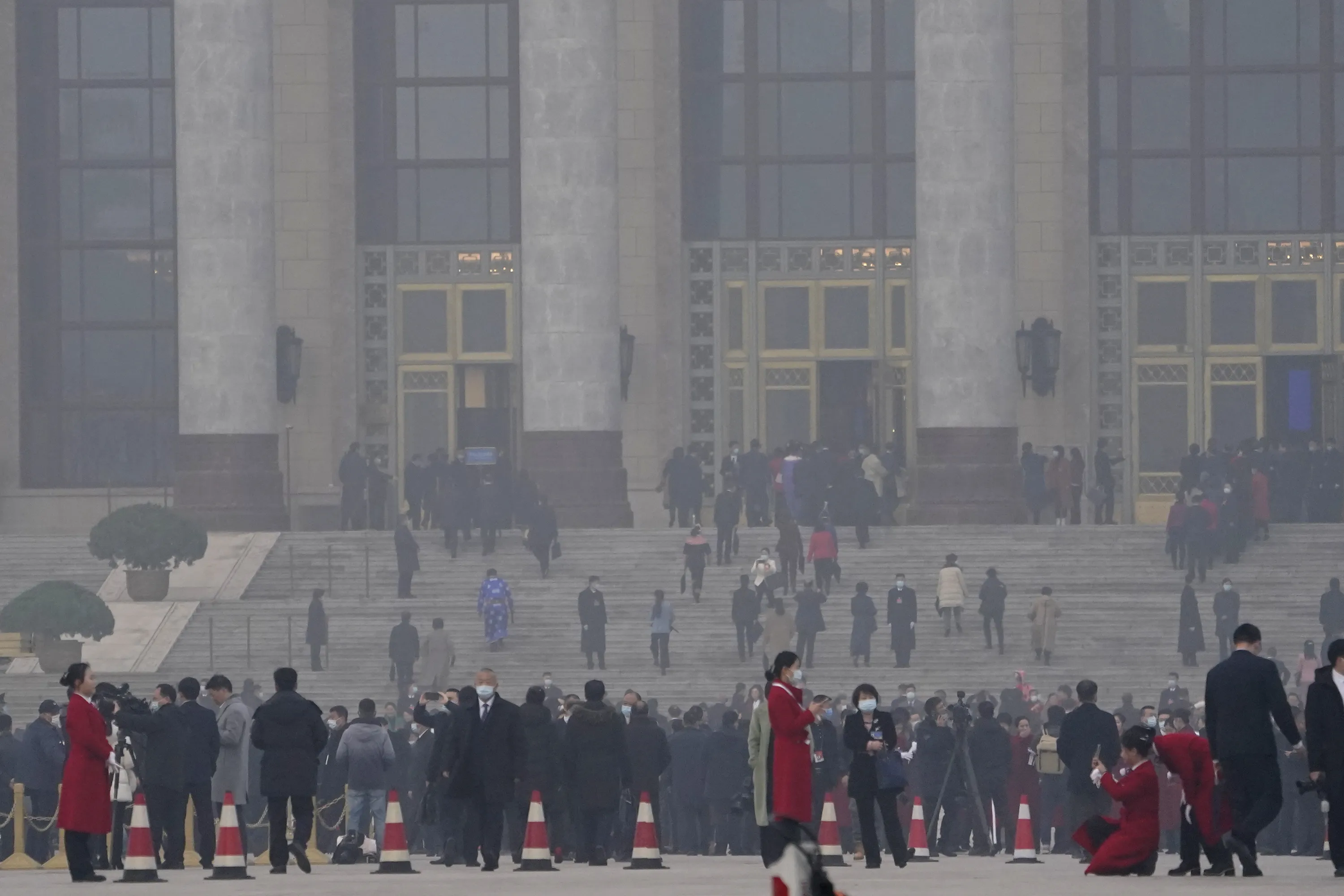 Delegates arrive at the Great Hall of the People for the opening session of the annual National People's Congress held in Beijing on Friday, March 5, 2021. (Photo by Ng Han Guan/AP Photo)