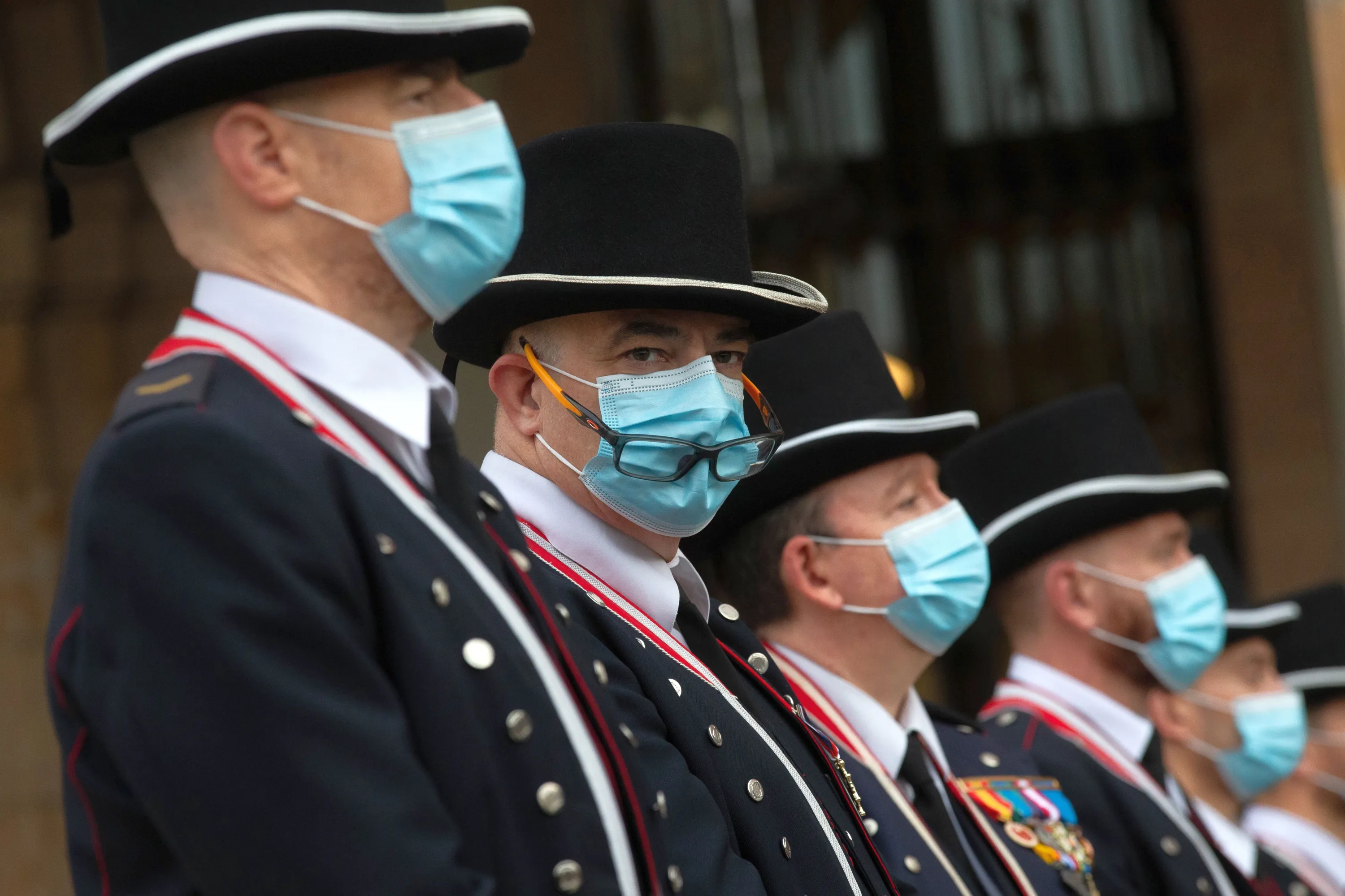 Catalan Mossos d'Esquadra police's honor guard are lined up to receive Catalan authorities at the Catalan Parliament, in Barcelona, Spain, 12 March 2021. The Catalan Parliament is to constitute during the session to begin a new term of office after the 14 February regional election. Pro-independent JxCat party's member Laura Borras is expected to be proclaimed the Catalan Parliament's speaker during the session. (Photo by Quique Garcia/EPA/EFE)