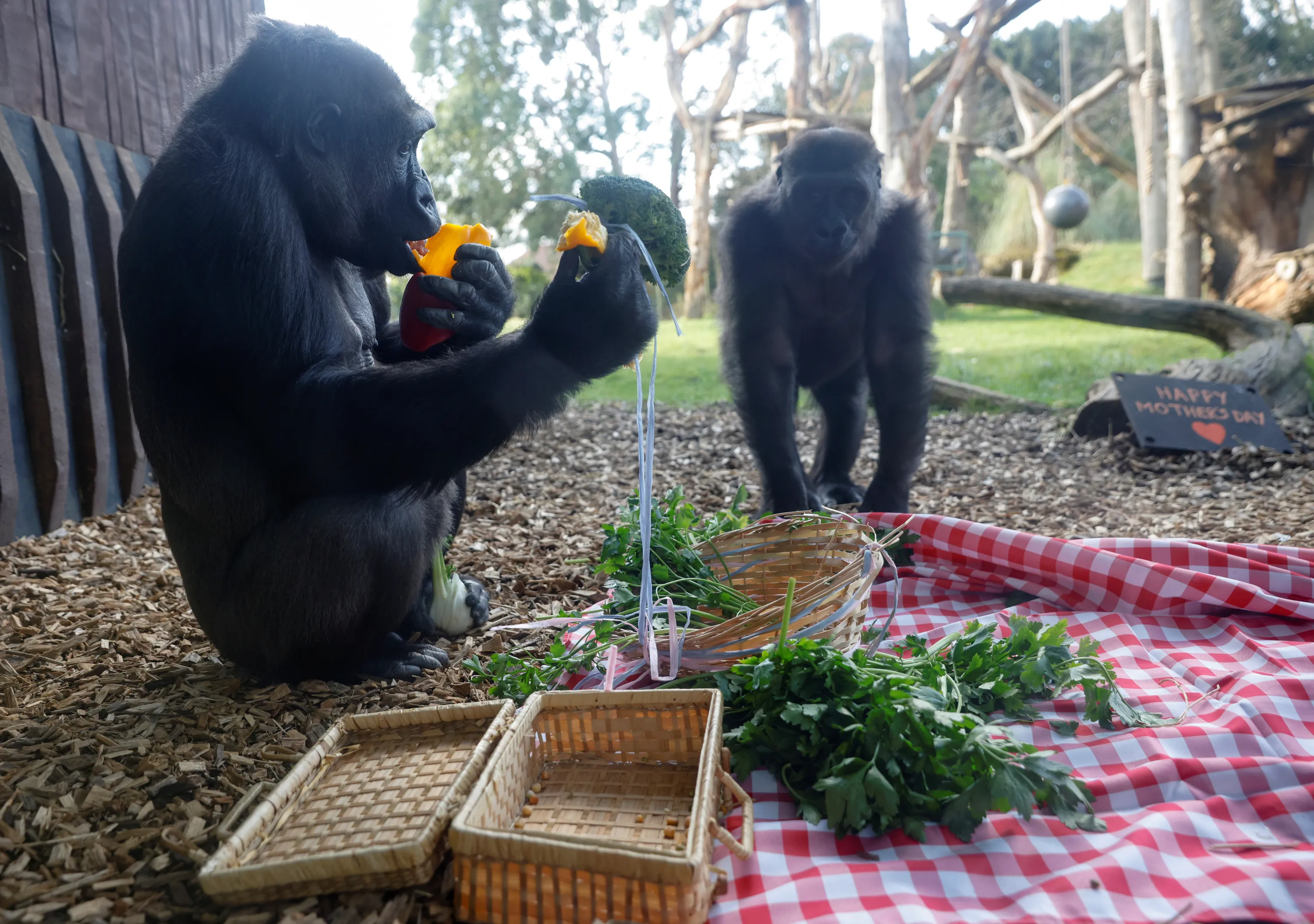 Western-lowland gorillas take part in a Mother’s Day picnic provided by their keepers during a photo-call at ZSL London Zoo in London, Britain, March 11, 2021. (Photo by John Sibley/Reuters)