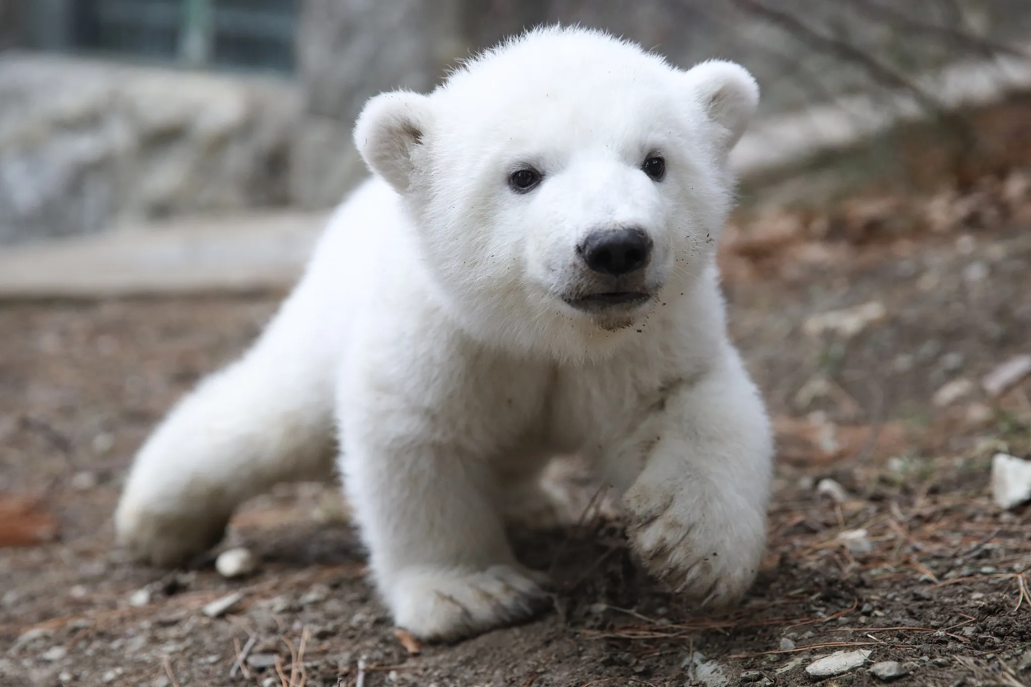 Two fluffy polar bear cubs are seen playing with each other at the Gelendzhik Safari Park in southern Russia, February 27, 2021. (Photo by VCG/Stringer)