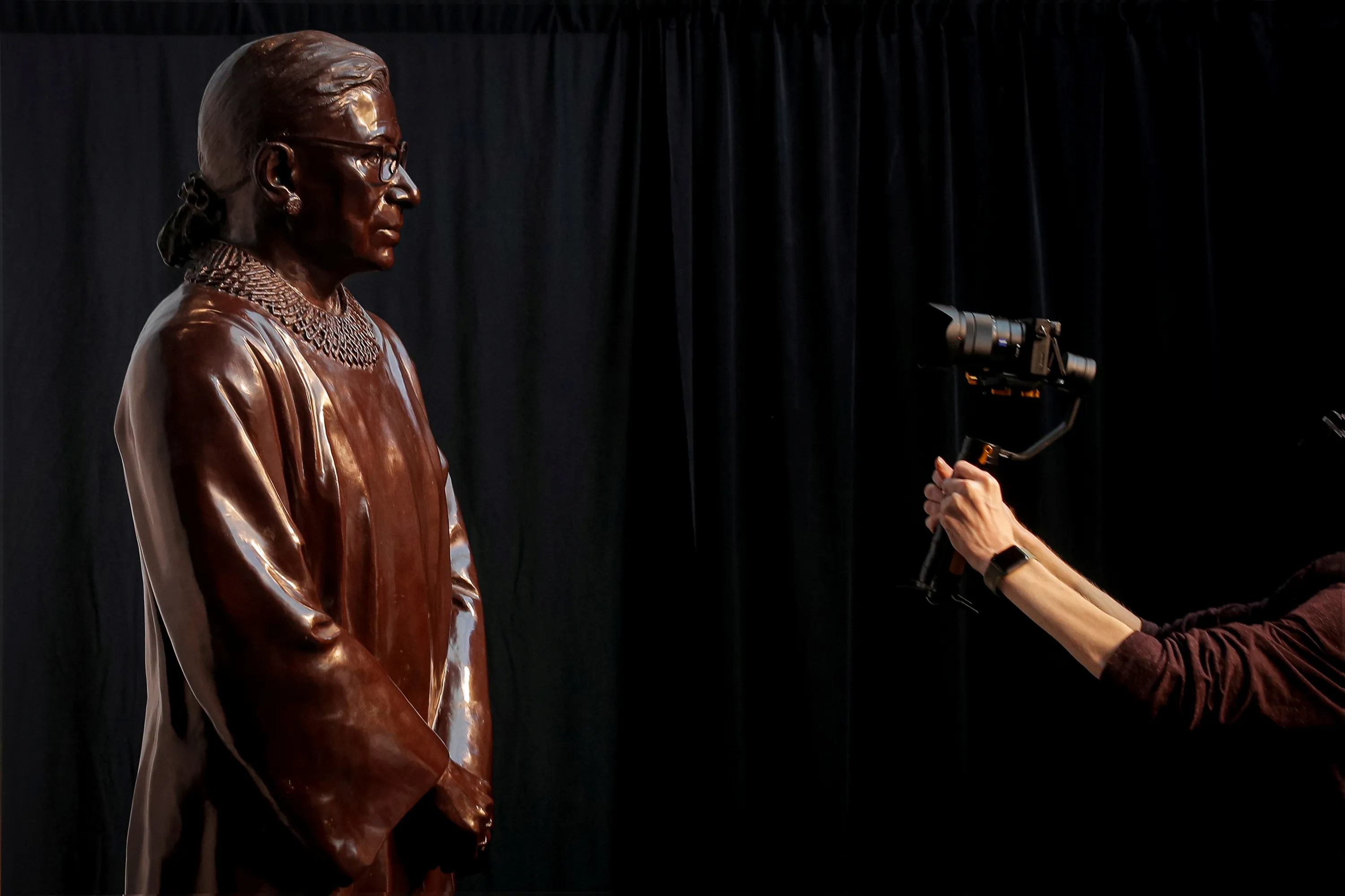 A bronze statue of the late U.S. Supreme Court Justice Ruth Bader Ginsburg made by artists Gillie and Marc is unveiled at City Point in Brooklyn, New York, U.S., March 12, 2021. (Photo by Brendan McDermid/Reuters)