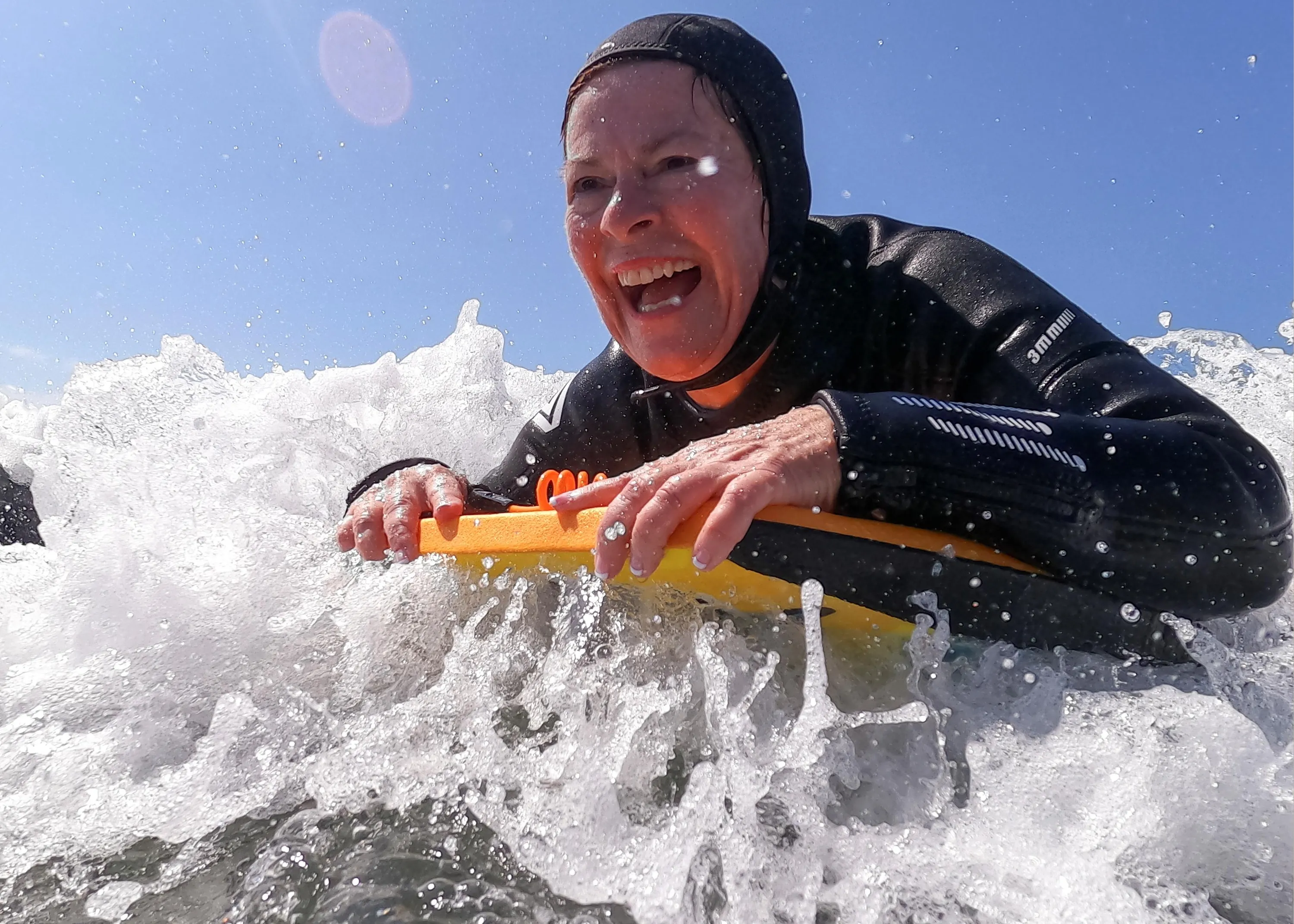 Karen Helman, 67, rides her boogie board as she joins a senior women's group in the ocean waves on International Women's Day, amid the outbreak of the coronavirus disease (COVID-19) in Solana Beach, California, U.S., March 8, 2021. (Photo by Mike Blake/Reuters)