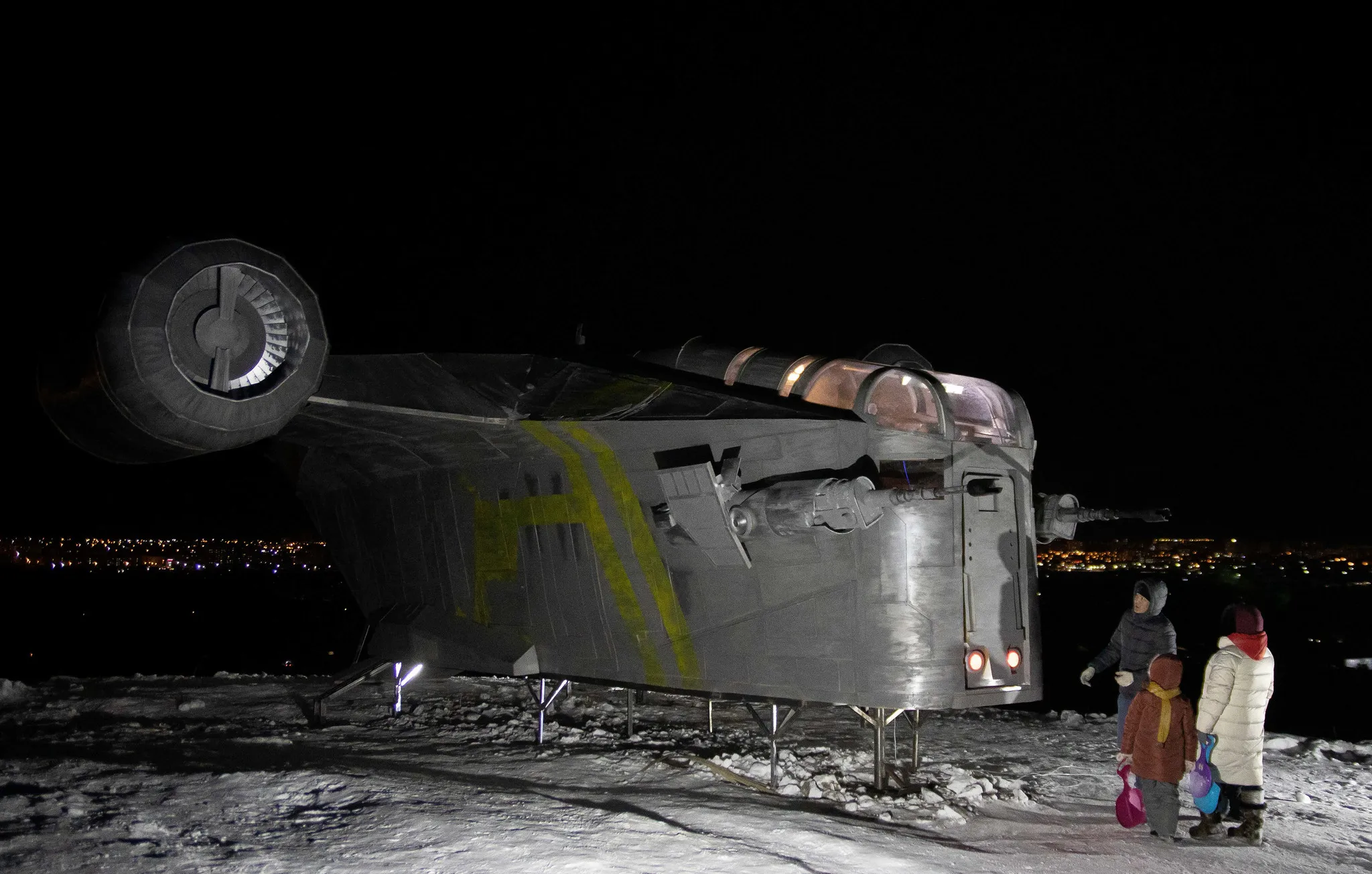 A view of a mockup of the Razor Crest spaceship from The Mandalorian drama series set within the Star Wars universe in Yakutsk, Sakha Republic (Yakutia), Russia on March 12, 2021. Fans have built the replica in several months. The length of the mockup is 14 m, its width is 10 m and its height is 4 m; it weighs over a tonne. (Photo by Reuters/Stringer)