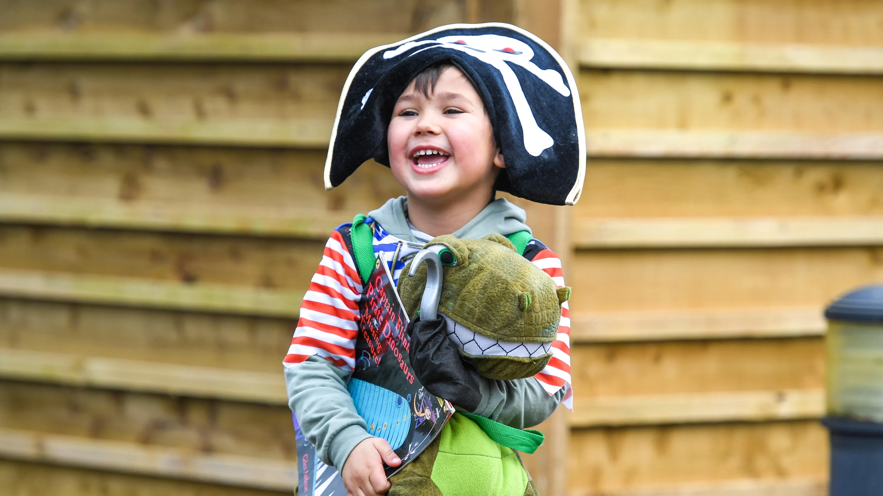 Key worker pupil Henry (4) dressed up for World Book Day is welcomed to The Prince of Wales School by headteacher Gary Spracklen on March 04, 2021 in Dorchester, England. England's schools will re-open to pupils from March 8th, 2021 after closing for a third lockdown on Tuesday, January 5th 2021. (Photo by Finnbarr Webster/Getty Images)