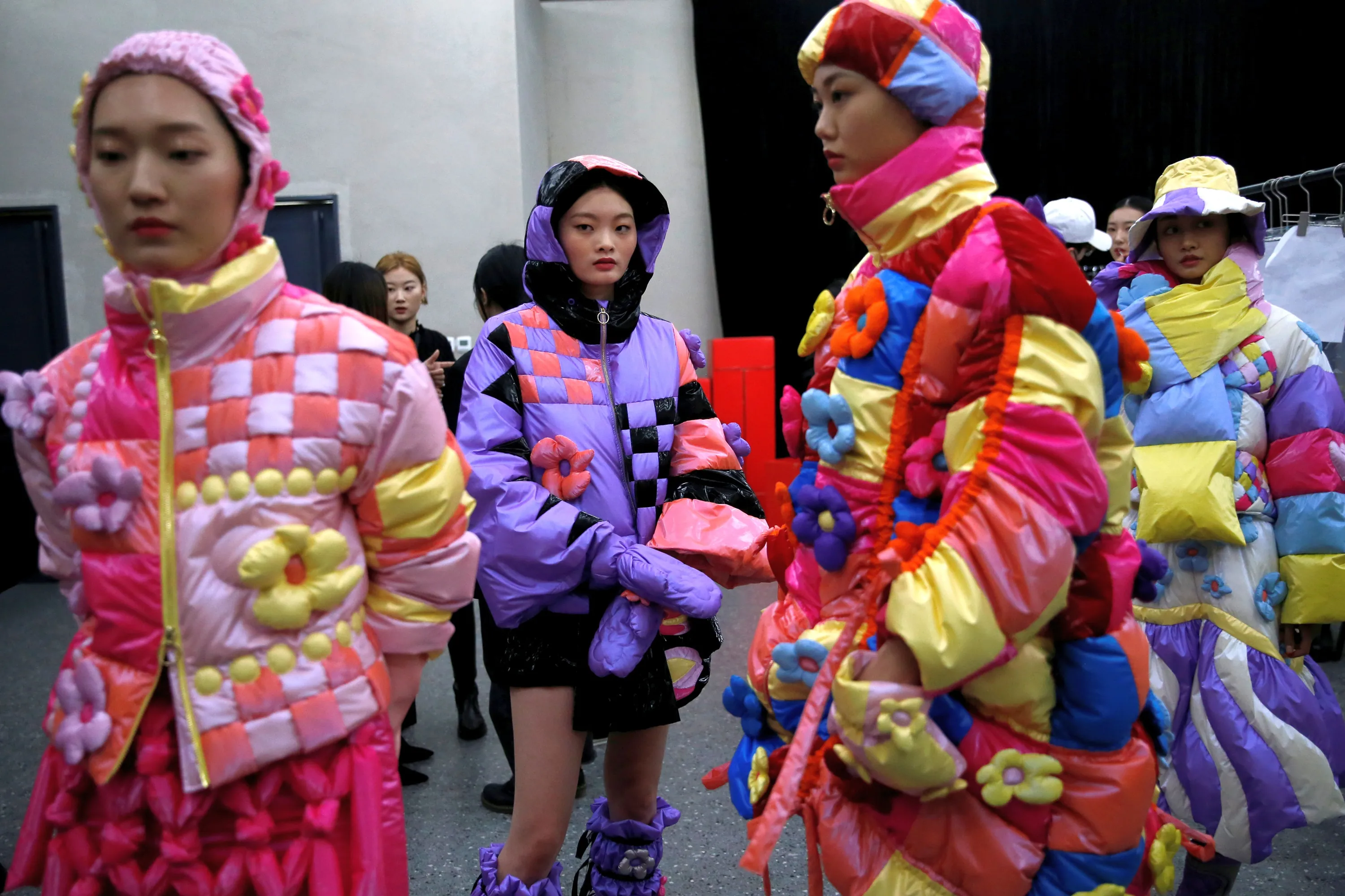Models prepare backstage before the Leaf Xia Color Wonderland collection show by Yiqi Xia during China Fashion Week in Beijing, China on March 25, 2021. (Photo by Tingshu Wang/Reuters)