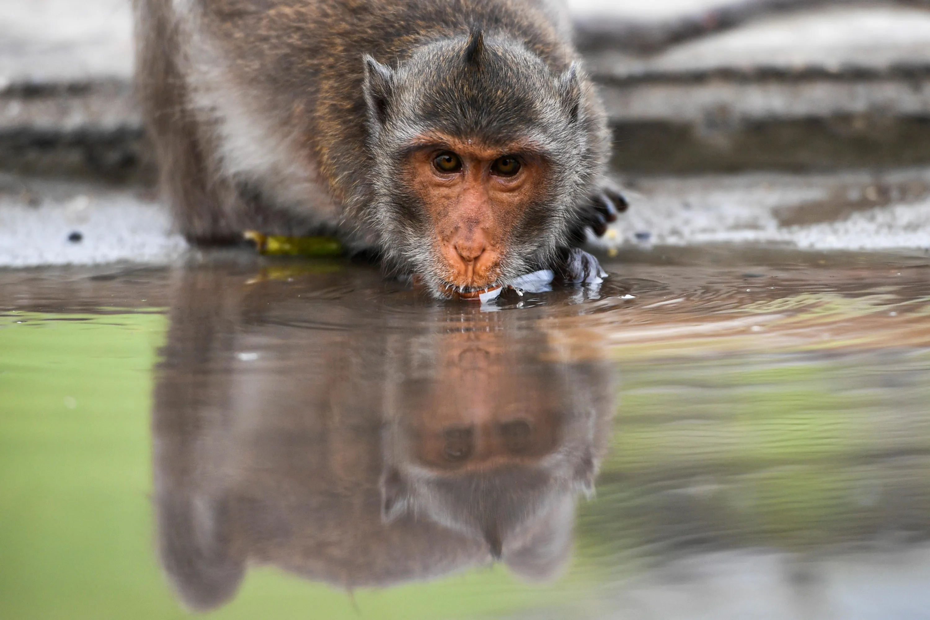 A long-tailed macaque drinks water in a mangrove near Bang Khun Thian on World Water Day at the outskirts of Bangkok, Thailand on March 22, 2021. (Photo by Chalinee Thirasupa/Reuters)