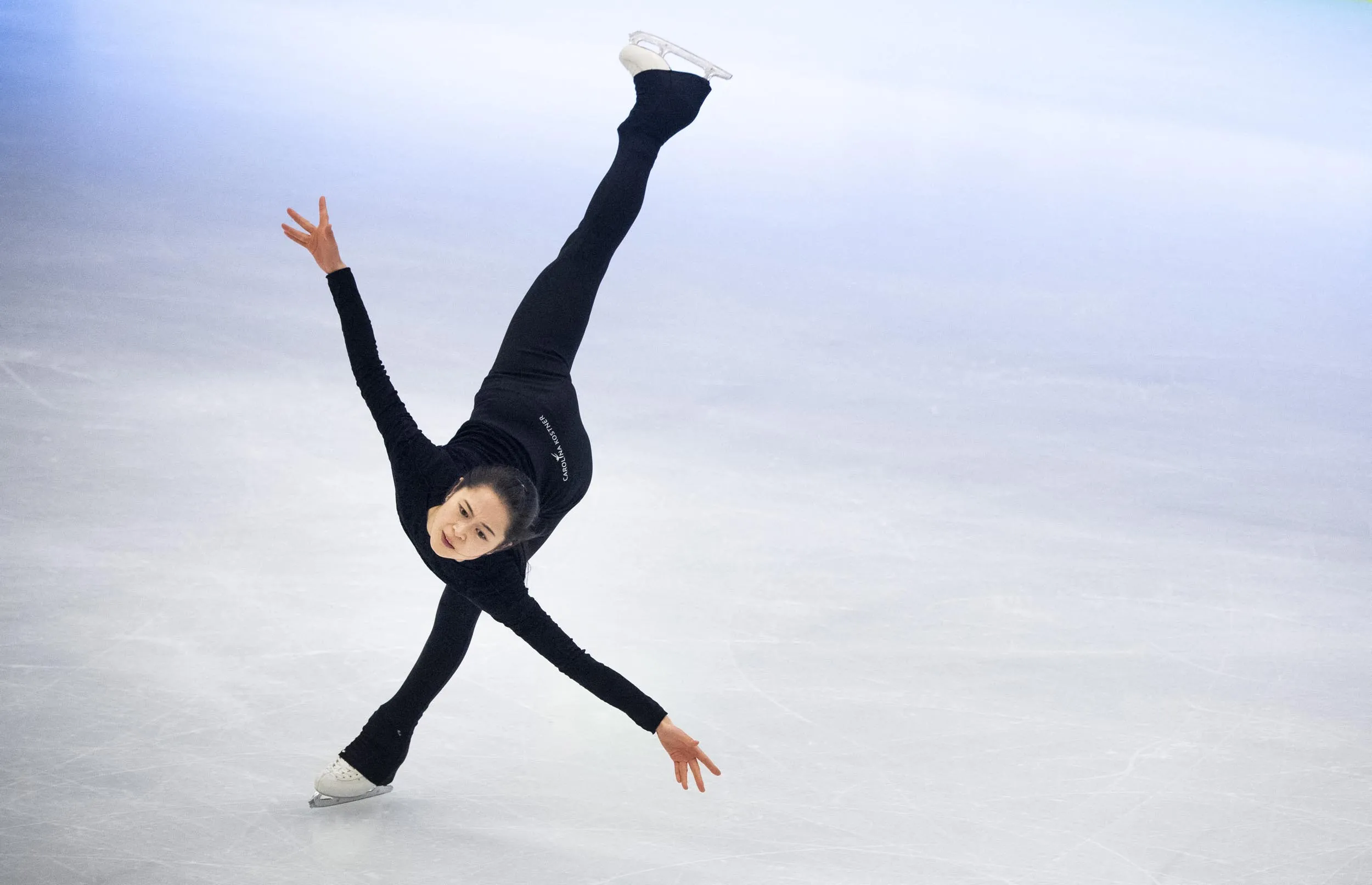 Japan's Satoko Miyahara practices during a training session prior to the 2021 ISU World Figure Skating Championships at the Stockholm Globe Arena in Stockholm, Sweden, on March 22, 2021. The event is scheduled to be held from March 24 to March 28, 2021. (Photo by Pontus Lundahl/TT News Agency/AFP Photo)