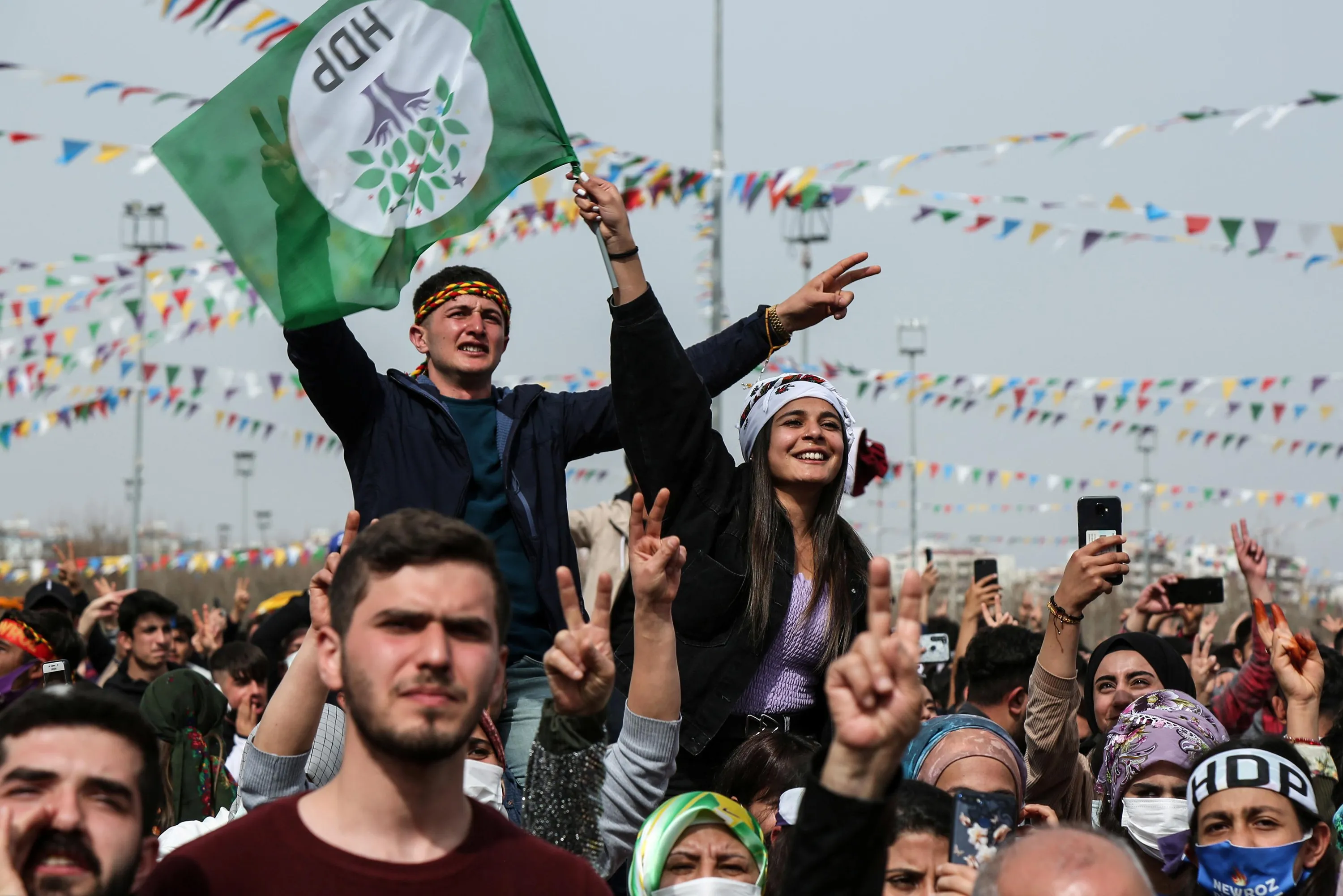 Supporters of pro-Kurdish Peoples' Democratic Party (HDP) gather to celebrate Newroz, which marks the arrival of spring, in Diyarbakir, Turkey March 21, 2021. (Photo by Sertac Kayar/Reuters)