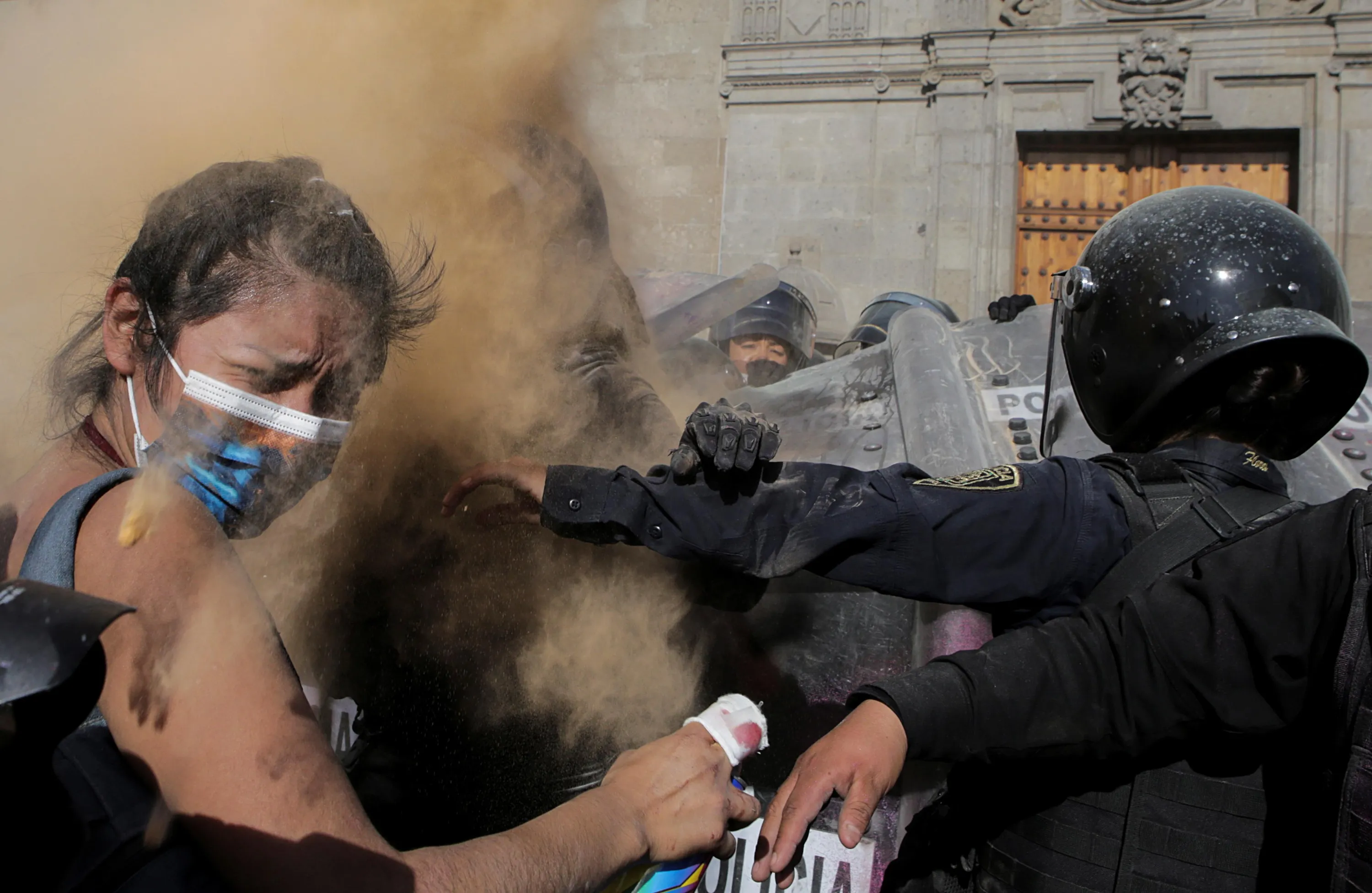 A woman reacts during clashes with police officers in a protest in support of Victoria Salazar, a Salvadoran woman who died after a Mexican female police officer was seen in a video kneeling on her back, in Mexico City, Mexico on April 2, 2021. (Photo by Raquel Cunha/Reuters)