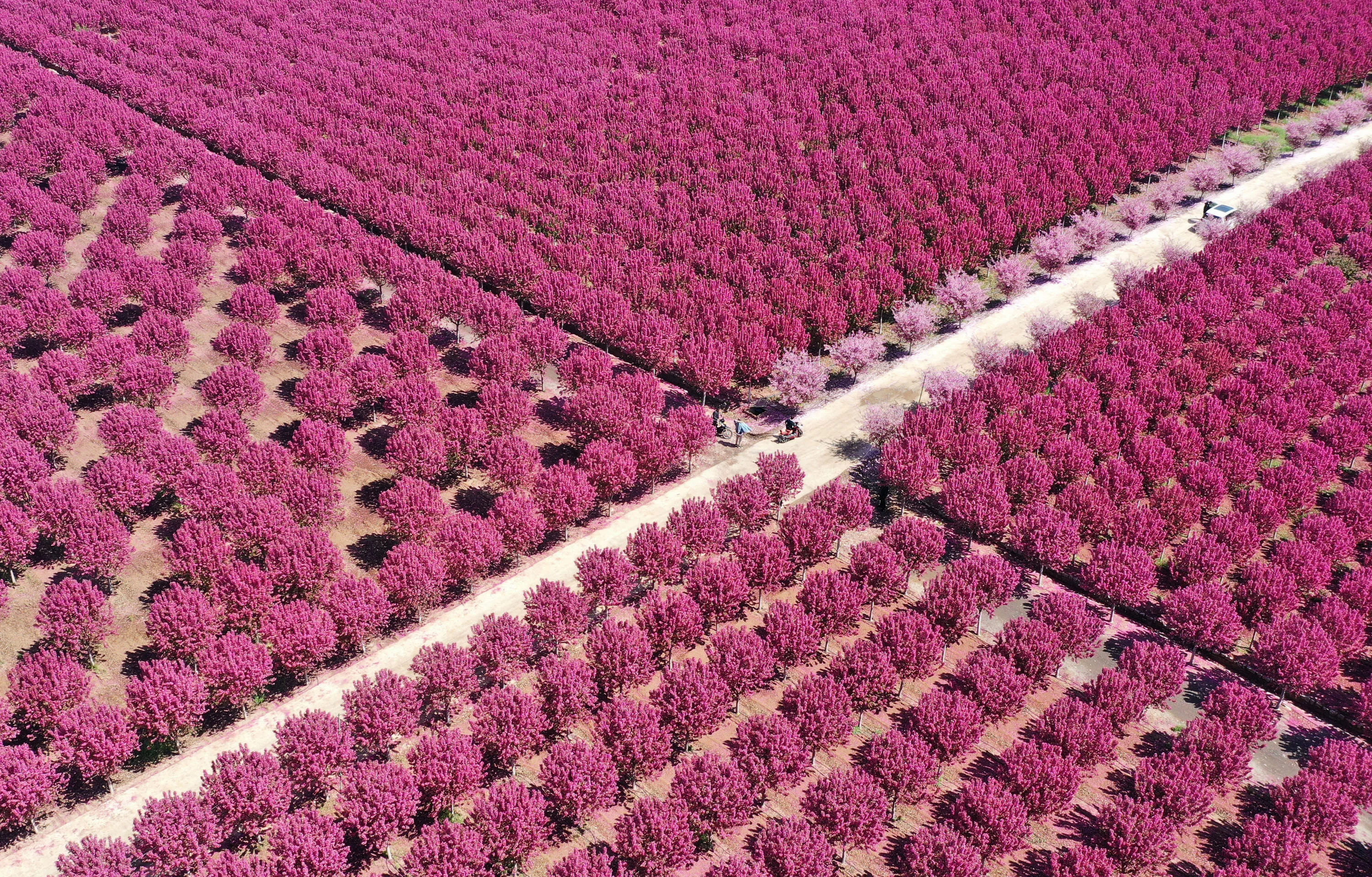 Aerial photo taken on April 4, 2021 shows tourists visiting the Begonia Garden in Handan City, north China's Hebei Province. (Photo credit should read Costfoto/Barcroft Media via Getty Images)