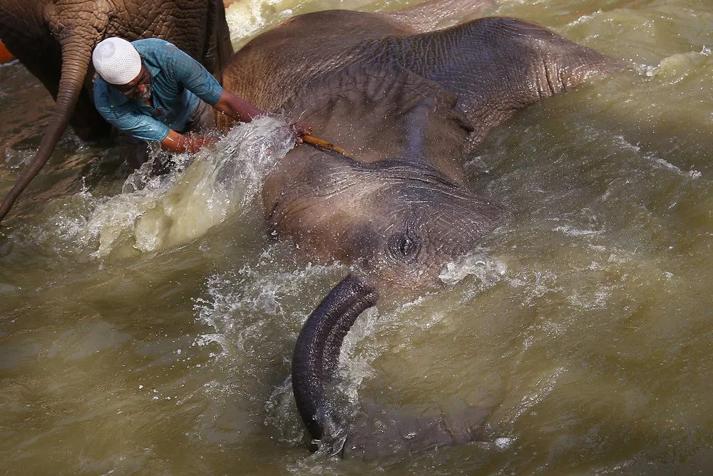 Elephants cool off at a zoo in Karachi, Pakistan, 31 March 2021. Caretakers at Karachi's zoo were working to keep animals cool during a heatwave affecting southern Pakistan. (Photo by Shahzaib Akber/EPA/EFE)