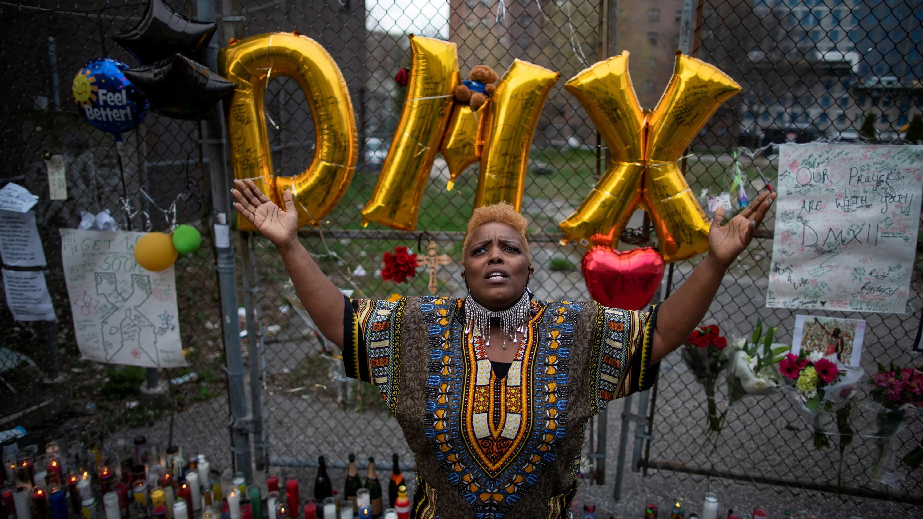 A woman prays at a makeshift memorial for musician and actor DMX outside White Plains Hospital, after he died at the age of 50 in White Plains, New York, U.S., April 9, 2021. (Photo by Eduardo Munoz/Reuters)