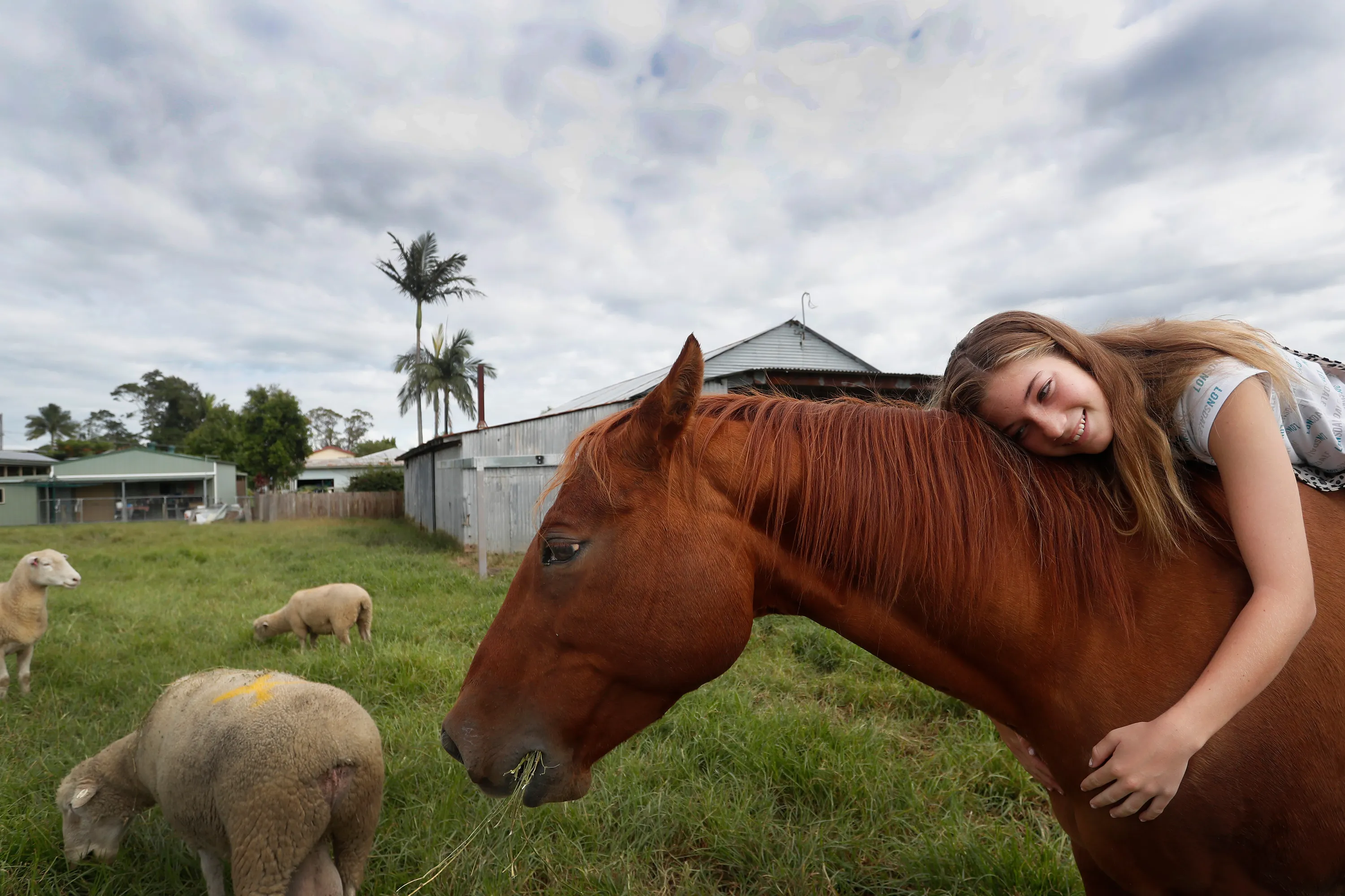Mia Harris hugs her horse Sharny who survived the recent flooding that inundated her family home in the small township of Croki on March 29, 2021 in Taree, Australia. The Australian Defence force are deploying 611 personnel across New South Wales as part of Operation NSW Flood Assist. Following initial emergency response from HMAS Albatross and RAAF Base Richmond, and Holsworthy, including Navy helicopter support for Search and Rescue. The Australian Defence force is now assisting with recovery operations that significantly increased on March 26th as flood waters started to recede and the operation shifted to a recovery and clean up phase. Unprecedented and devastating flooding across the state in recent weeks has seen tens of thousands of people forced to evacuate after days of torrential rain caused some of the worst floodings the state has ever seen. (Photo by Lisa Maree Williams/Getty Images)