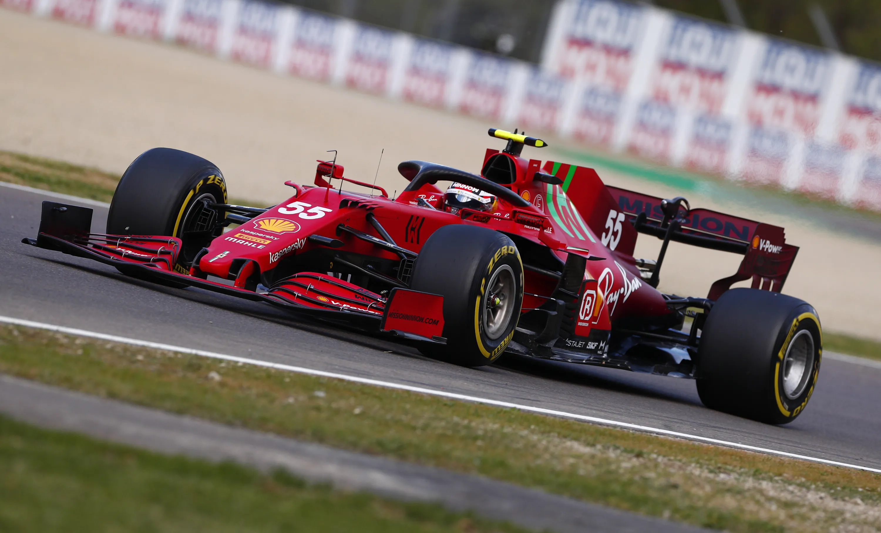 Ferrari's Carlos Sainz Jr. in action during a practice session at the Autodromo Internazionale Enzo e Dino Ferrari race track in Imola, Italy, on April 16, 2021, two days ahead of the Formula One Emilia Romagna Grand Prix. (Photo by Guglielmo Mangiapane/Reuters)