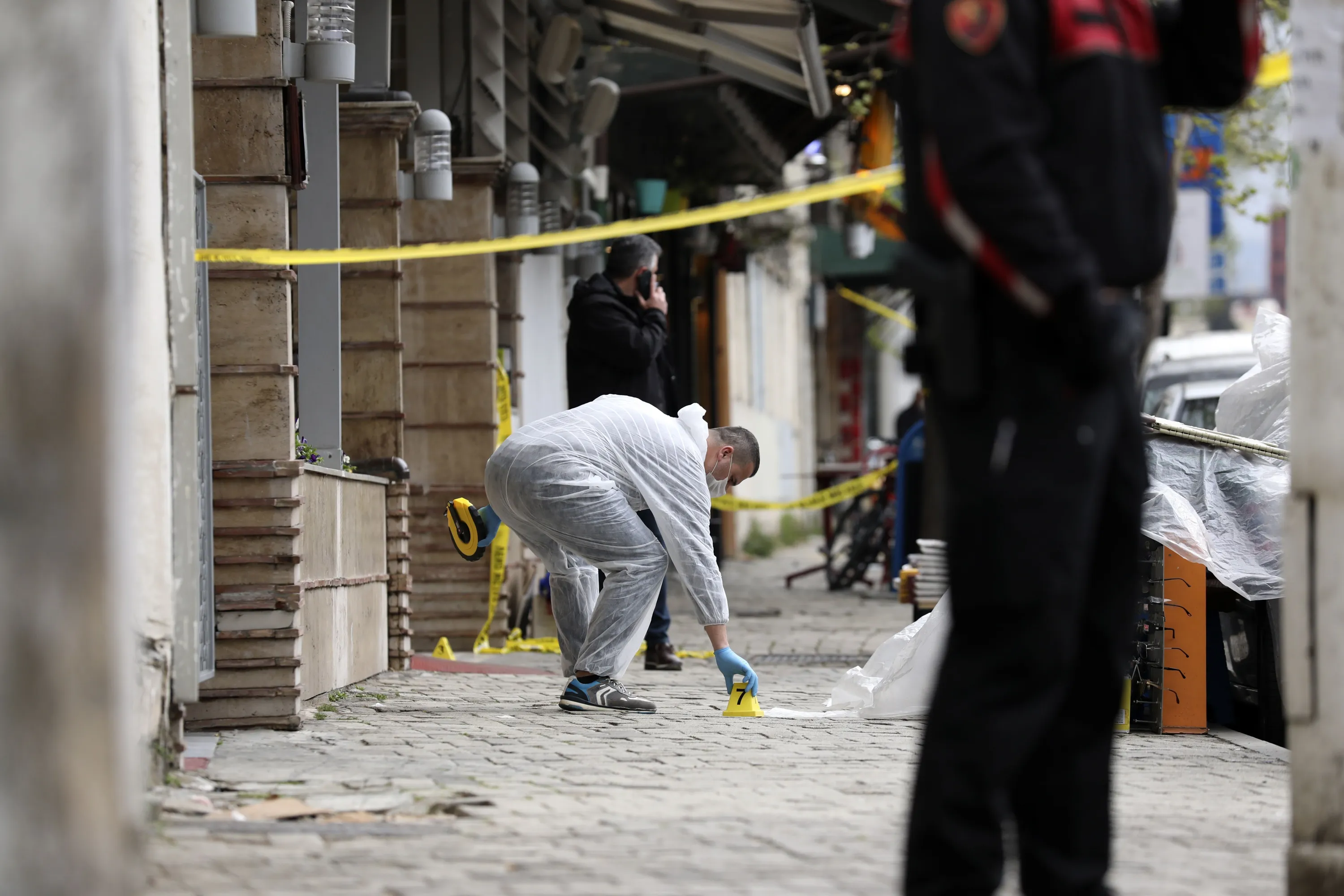 A policeman investigates the area outside Dine Hoxha mosque after a knife attack in Tirana, Albania, Monday, April 19, 2021. Monday, April 19, 2021. Police say an Albanian man with a knife has attacked five people at a mosque in the capital of Tirana. A police statement said Rudolf Nikolli, 34, entered the Dine Hoxha mosque in downtown Tirana about 2:30 p.m. and wounded five people with a knife. (Photo by AP Photo/Stringer)