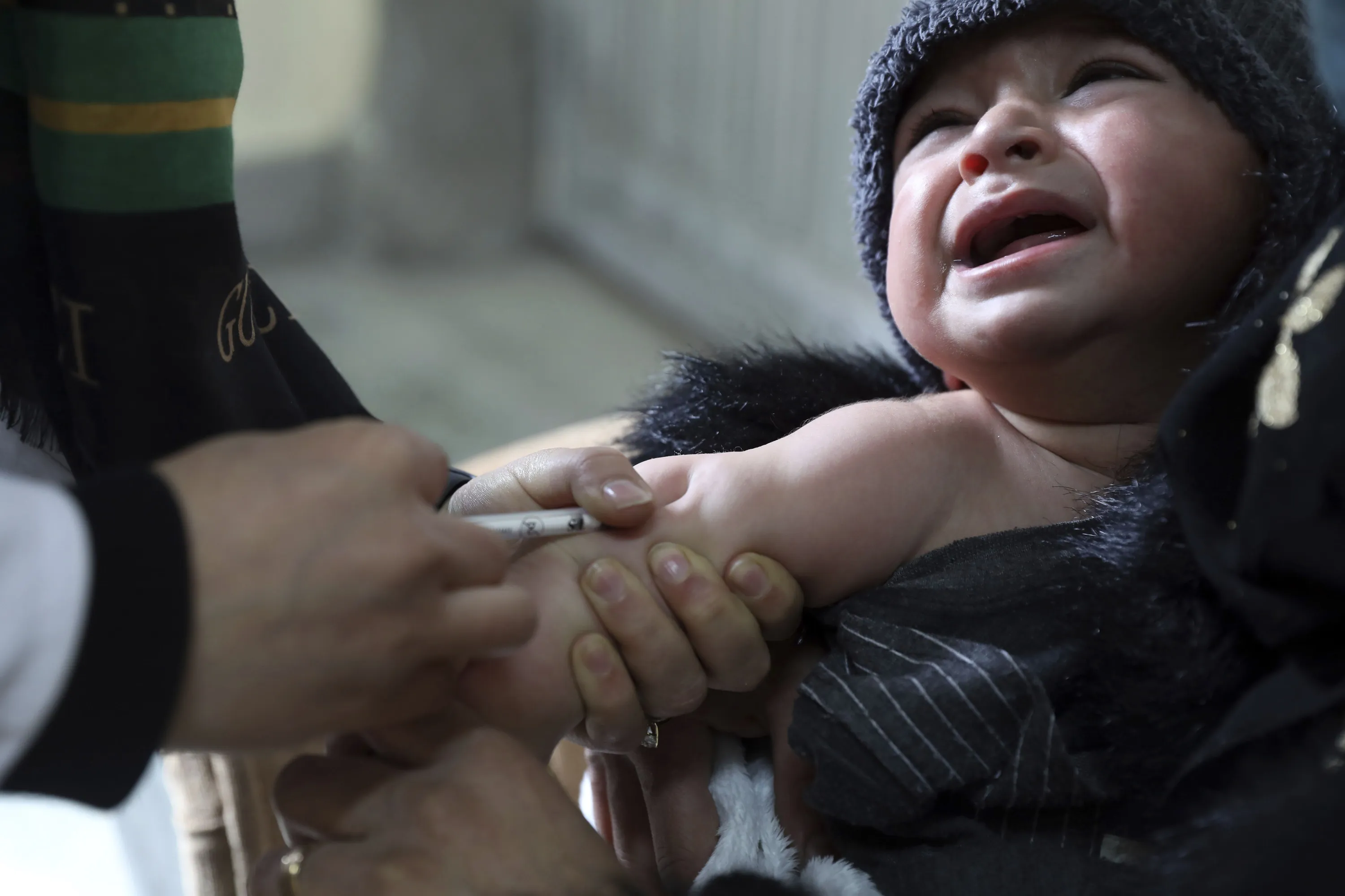 A child receives a measles vaccine at the Indira Gandhi Children Hospital, in Kabul, Afghanistan, Monday, March 15, 2021. (Photo by Rahmat Gul/AP Photo)