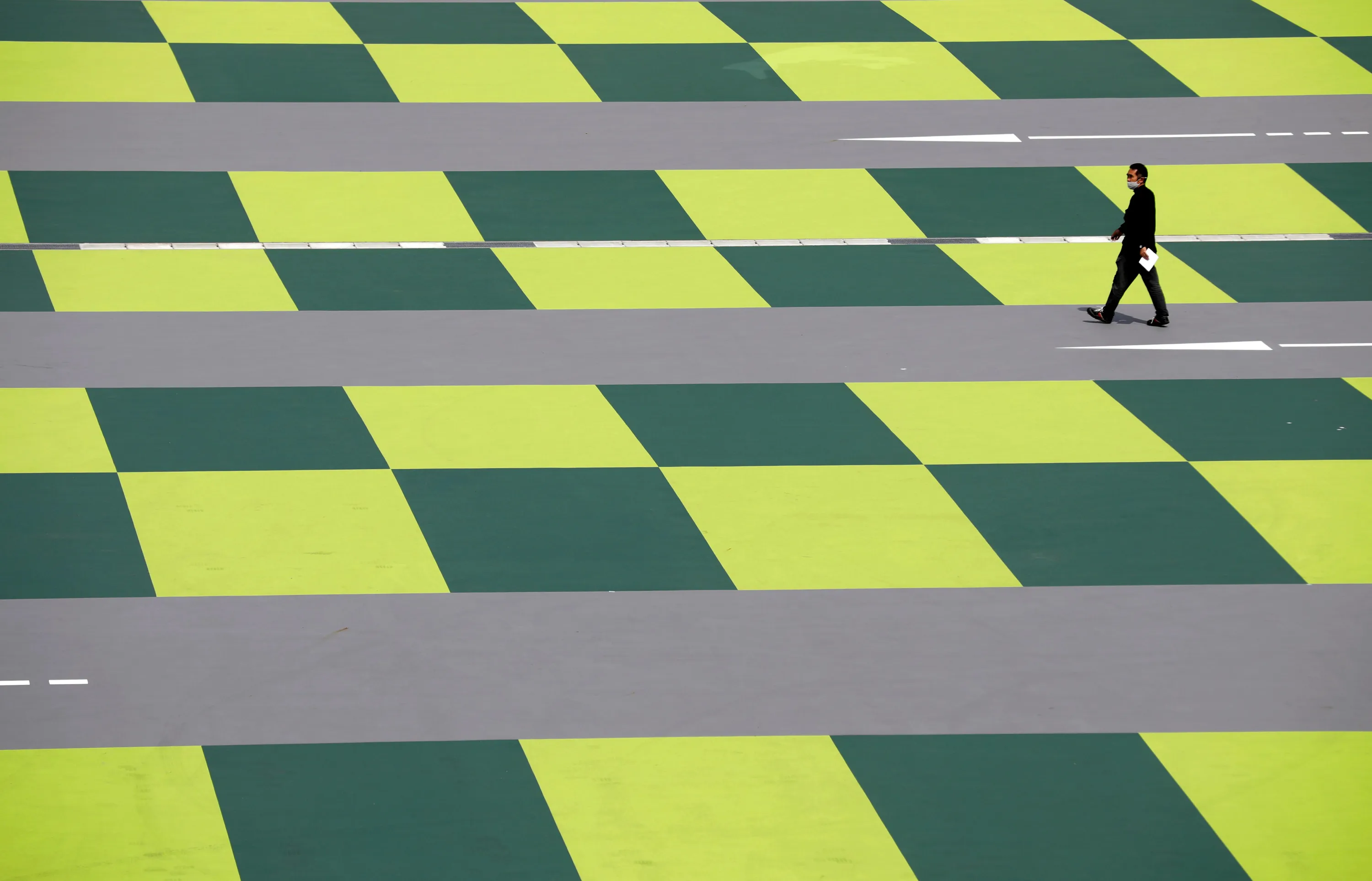 A man wearing a protective face mask amid the coronavirus disease (COVID-19) pandemic walks on a parking lot at a shopping mall in Tokyo, Japan, April 8, 2021. (Photo by Kim Kyung-Hoon/Reuters)
