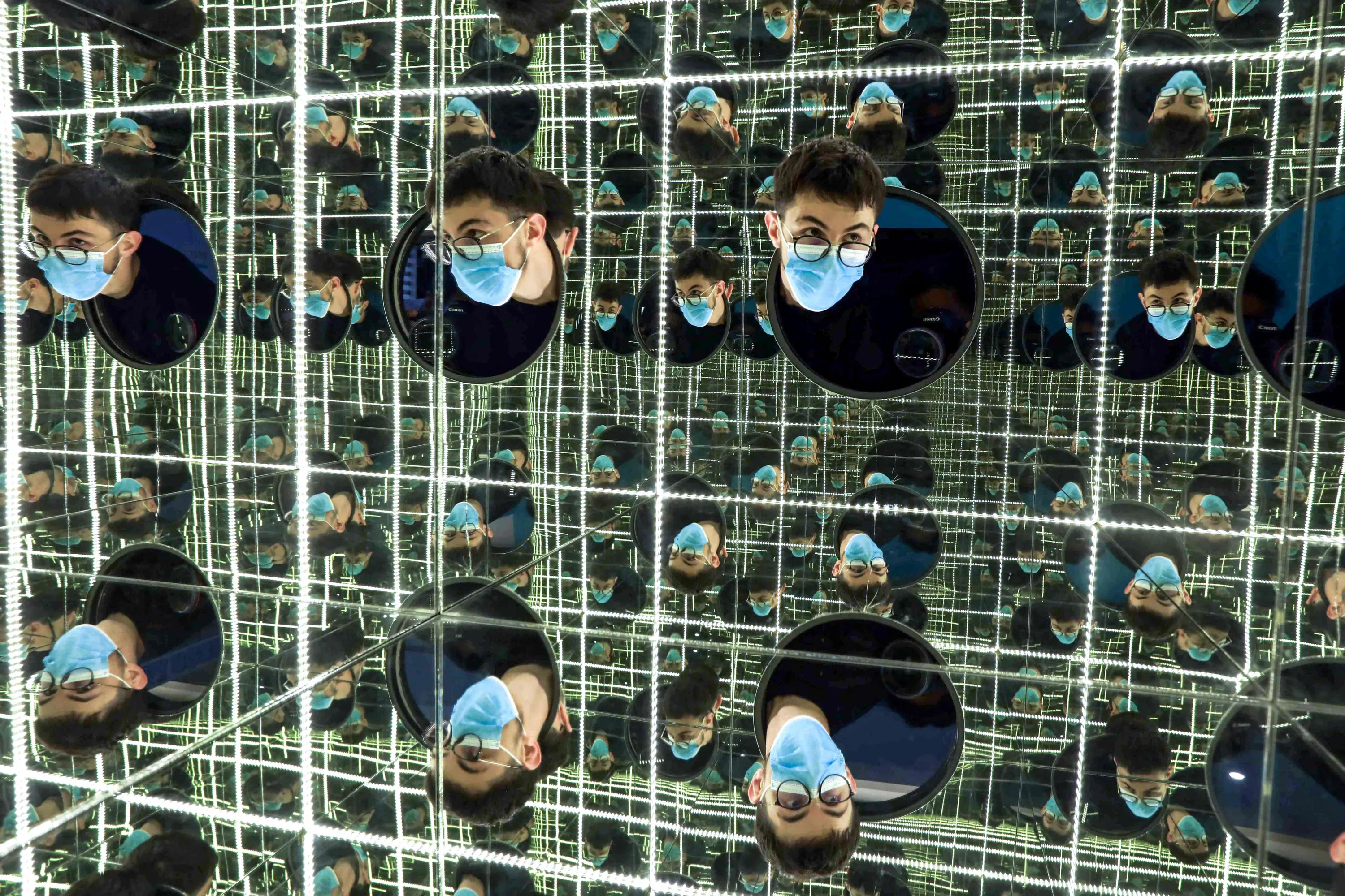 A visitor peeks into an optical illusion installation, at the Illusion Museum in Arbil, the capital of Iraq's northern autonomous Kurdish region on April 26, 2021. (Photo by Safin Hamed/AFP Photo)