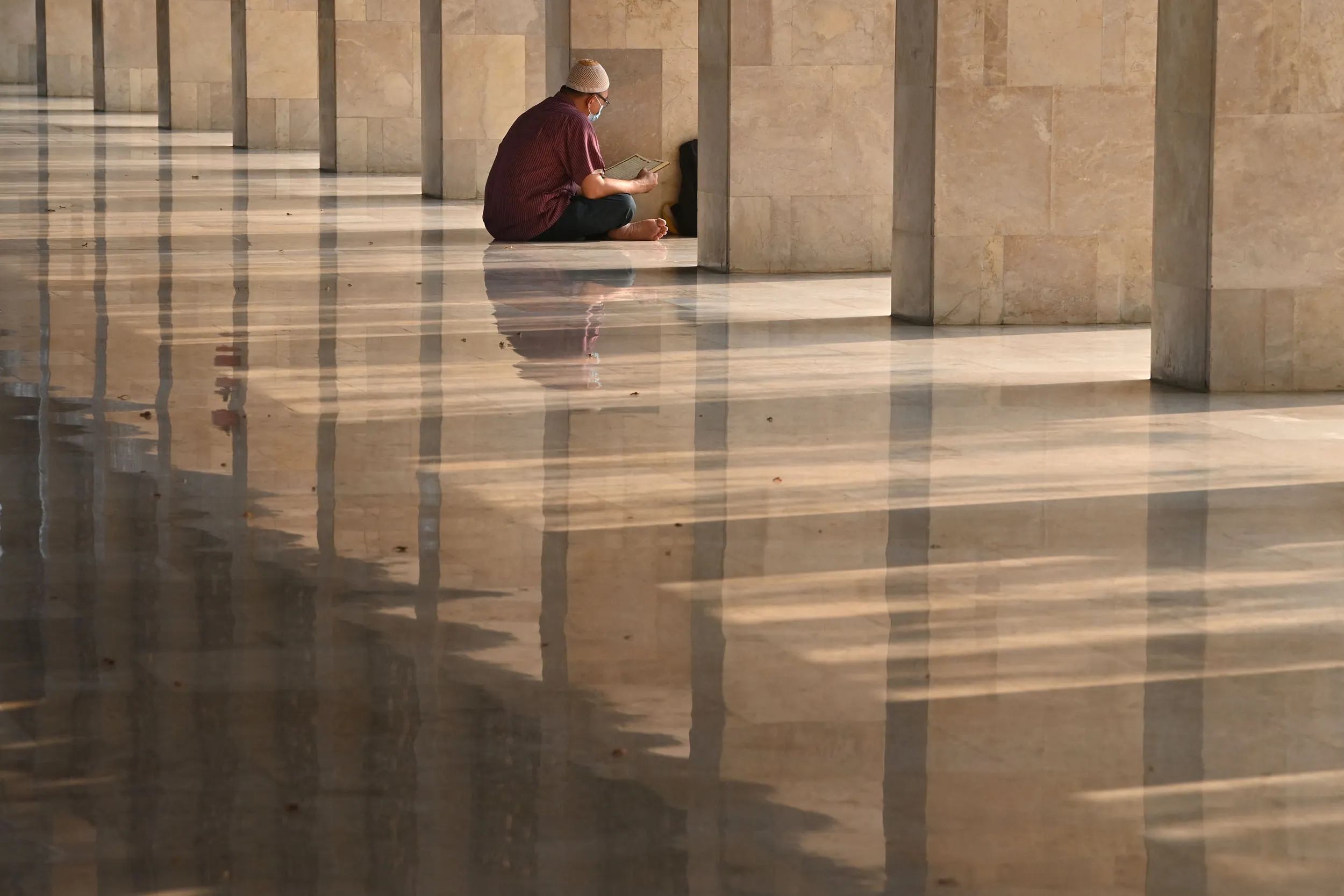 A Muslim man reads a copy of the Koran during Ramadan at the Istiqlal mosque in Jakarta on April 22, 2021. (Photo by Adek Berry/AFP Photo)