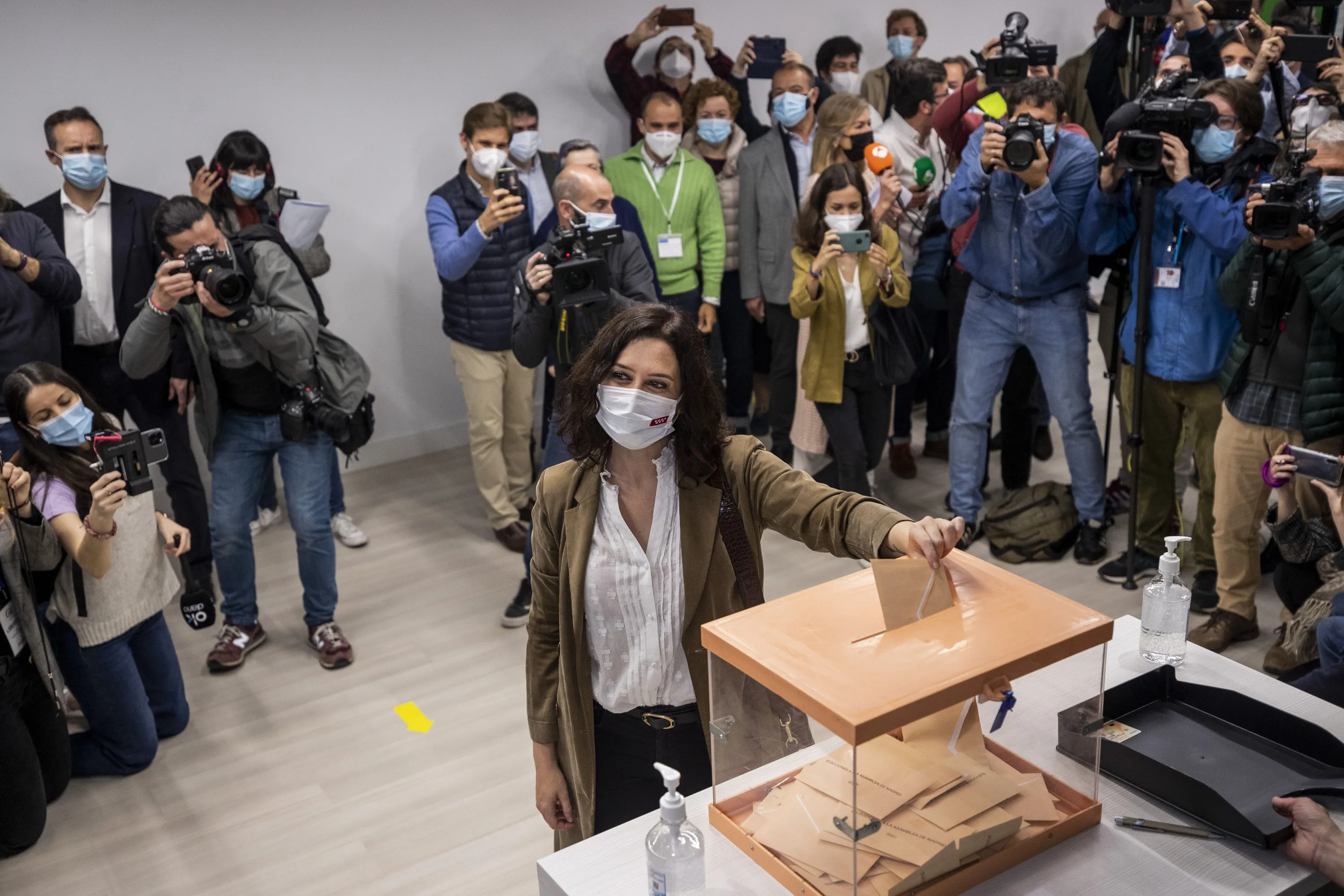The incumbent conservative Madrid president Isabel Diaz Ayuso casts her vote during the regional election in Madrid, Spain, Tuesday, May 4, 2021. (Photo by ernat Armangue/AP Photo)