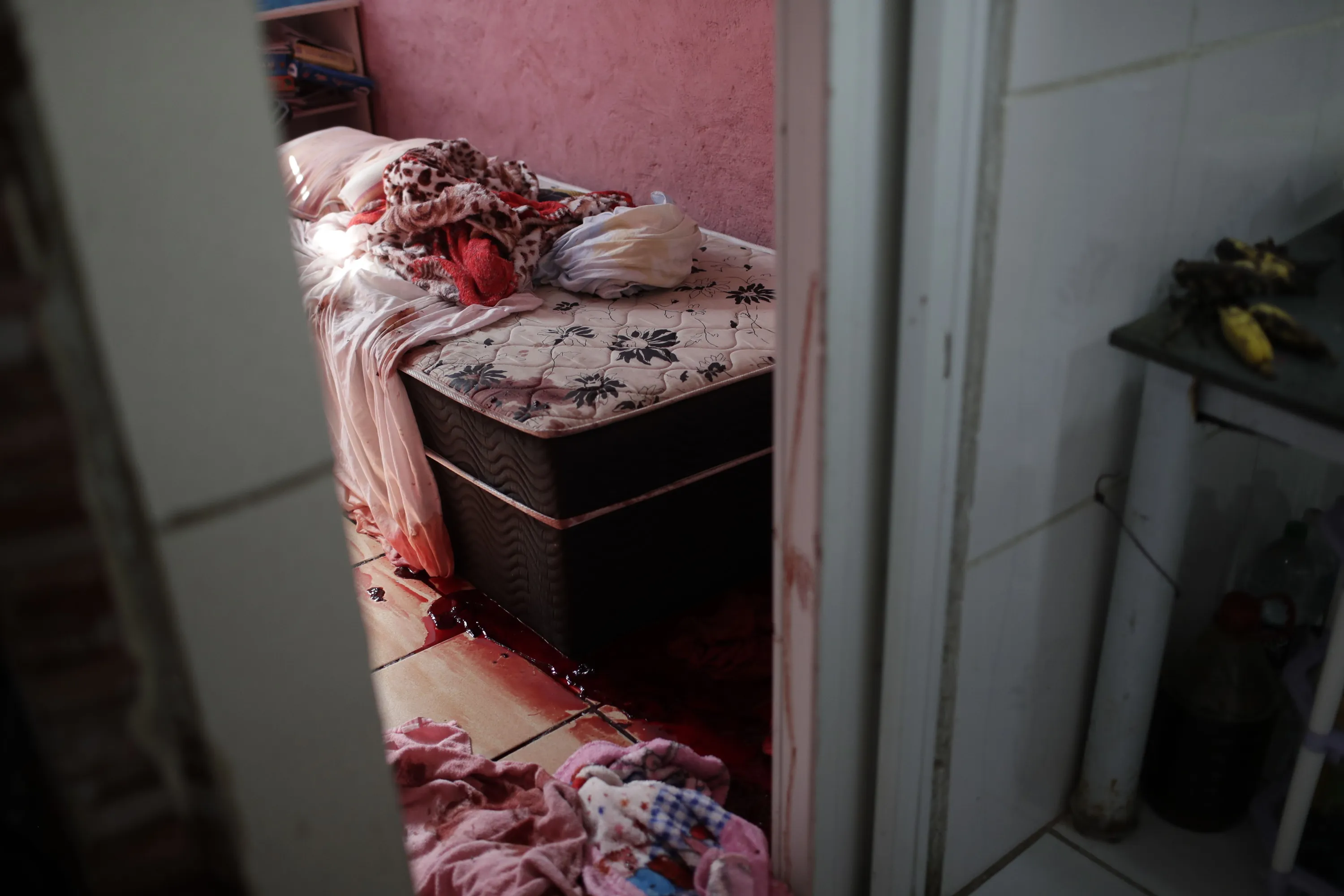 Blood covers the floor and a bed inside a home during a police operation targeting drug traffickers in the Jacarezinho favela of Rio de Janeiro, Brazil, Thursday, May 6, 2021. (Photo by Silvia Izquierdo/AP Photo)