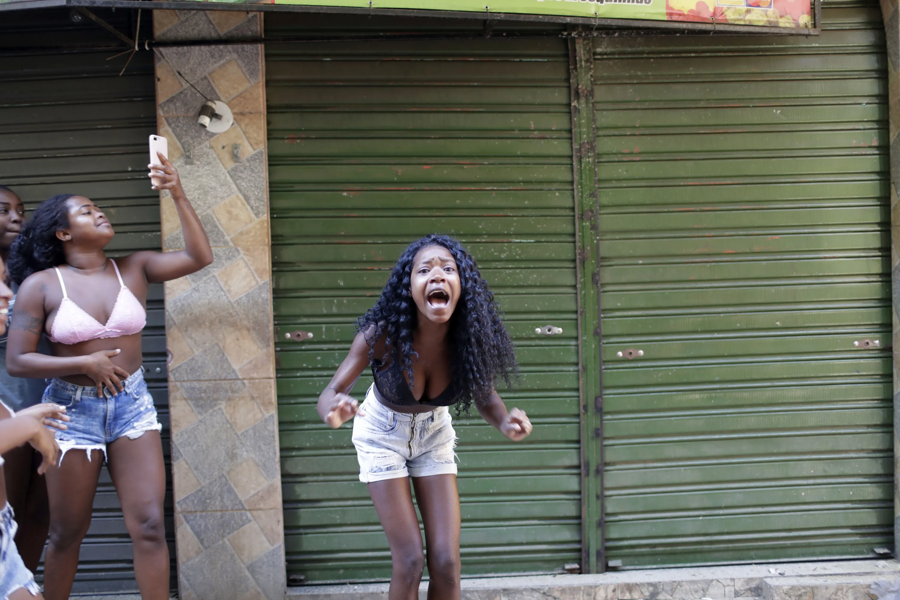 Residents protest a police operation targeting drug traffickers in the Jacarezinho favela of Rio de Janeiro, Brazil, Thursday, May 6, 2021. (Photo by Silvia Izquierdo/AP Photo)