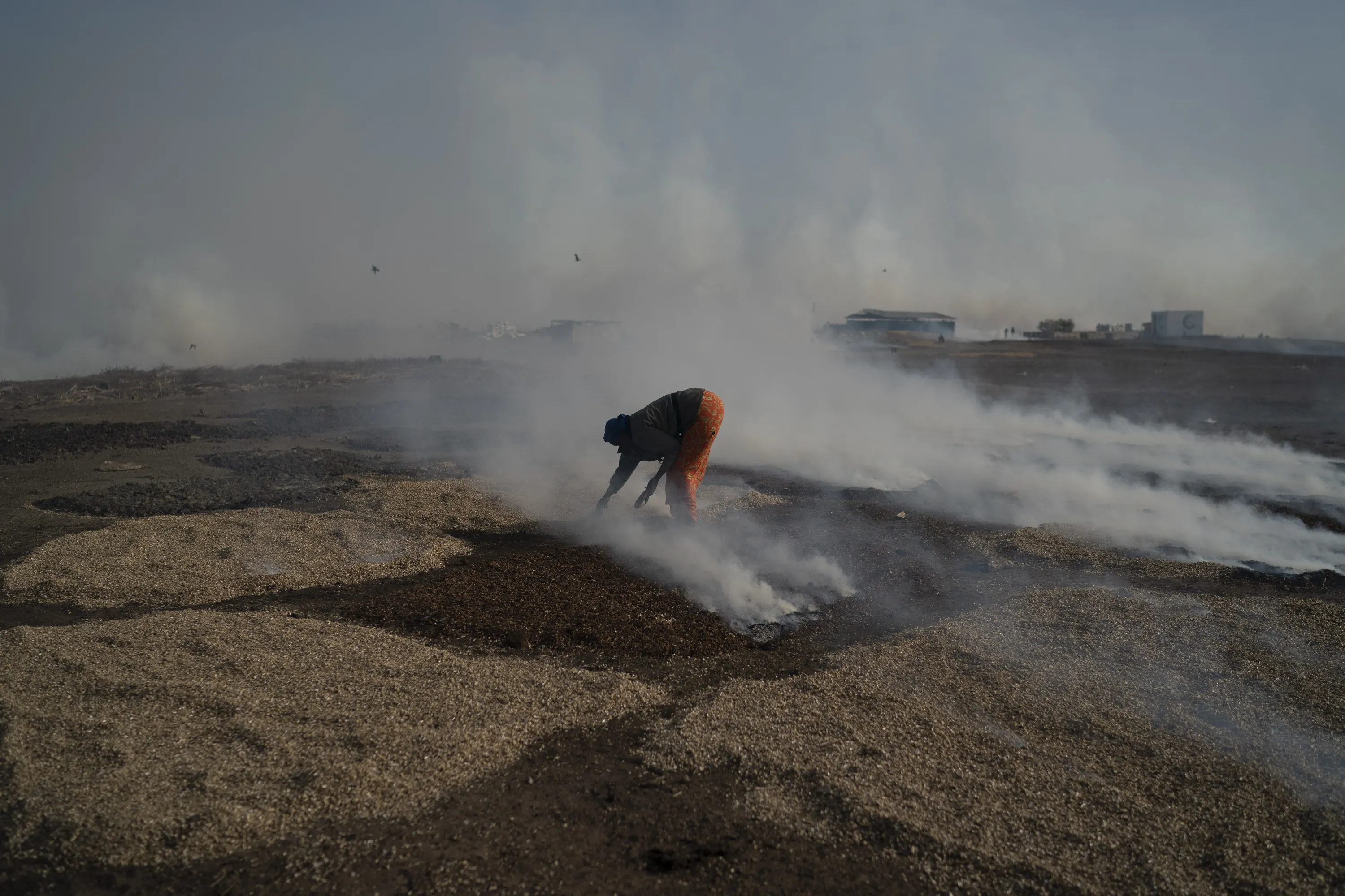 A woman covers fish with peanut shells to process it on Bargny beach, some 35 kilometers (22 miles) east of Dakar, Senegal, Wednesday April 21, 2021. (Photo by Leo Correa/AP Photo)