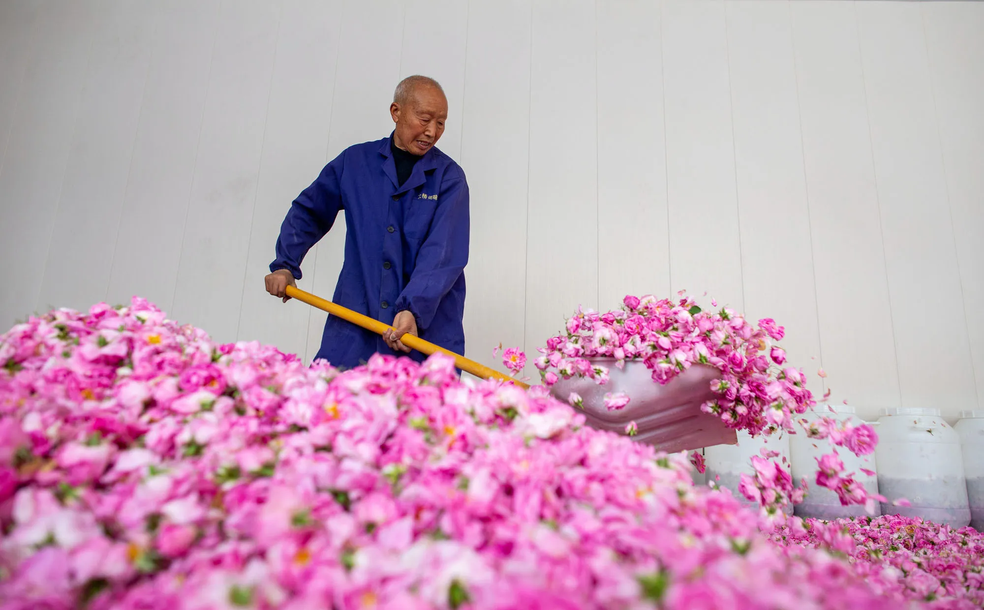 A villager sorts freshly picked roses in Hai 'an, East China's Jiangsu province, May 6, 2021. (Photo by Costfoto/Barcroft Media via Getty Images)