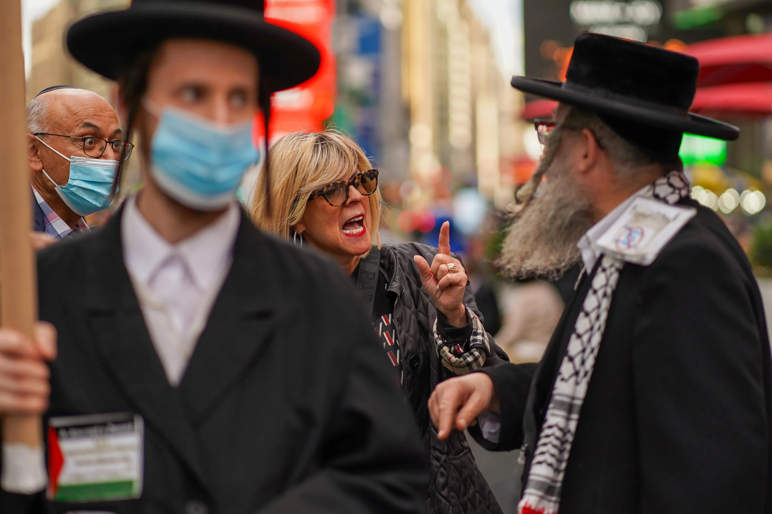 A Pro-Israel supporter confronts a Pro-Palestine ultra-Orthodox Jew during a Pro-Israel rally at Times Square in New York City, U.S., May 12, 2021. (Photo by David “Dee” Delgado/Reuters)