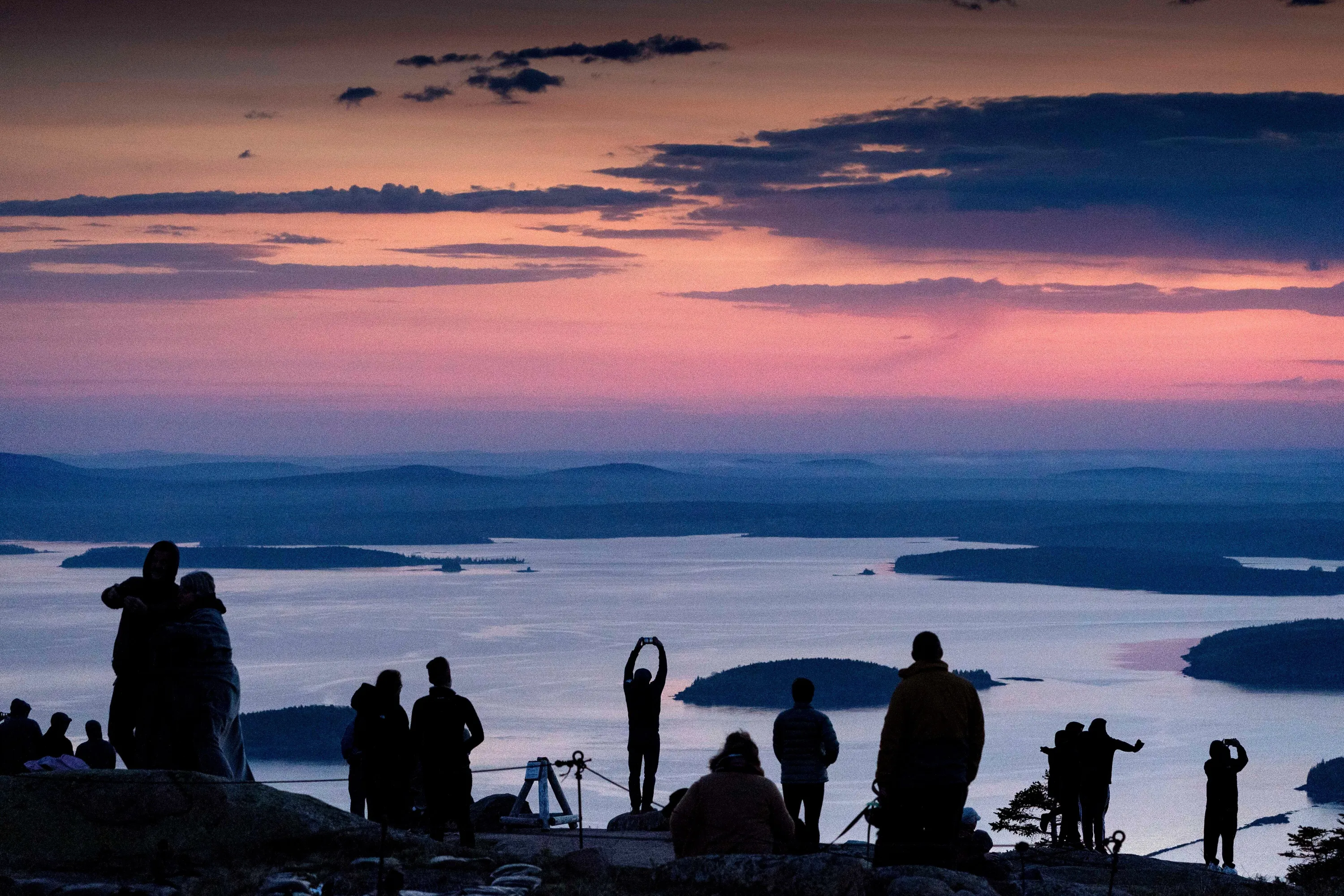 Early-rising visitors to Acadia National Park await the sunrise on the summit of Cadillac Mountain, Sunday, May 16, 2021, near Bar Harbor, Maine. Gov. Janet Mills is is eliminating most outdoor distancing requirements imposed during the COVID-19 pandemic as the tourism season begins to kick into gear. (Photo by Robert F. Bukaty/AP Photo)